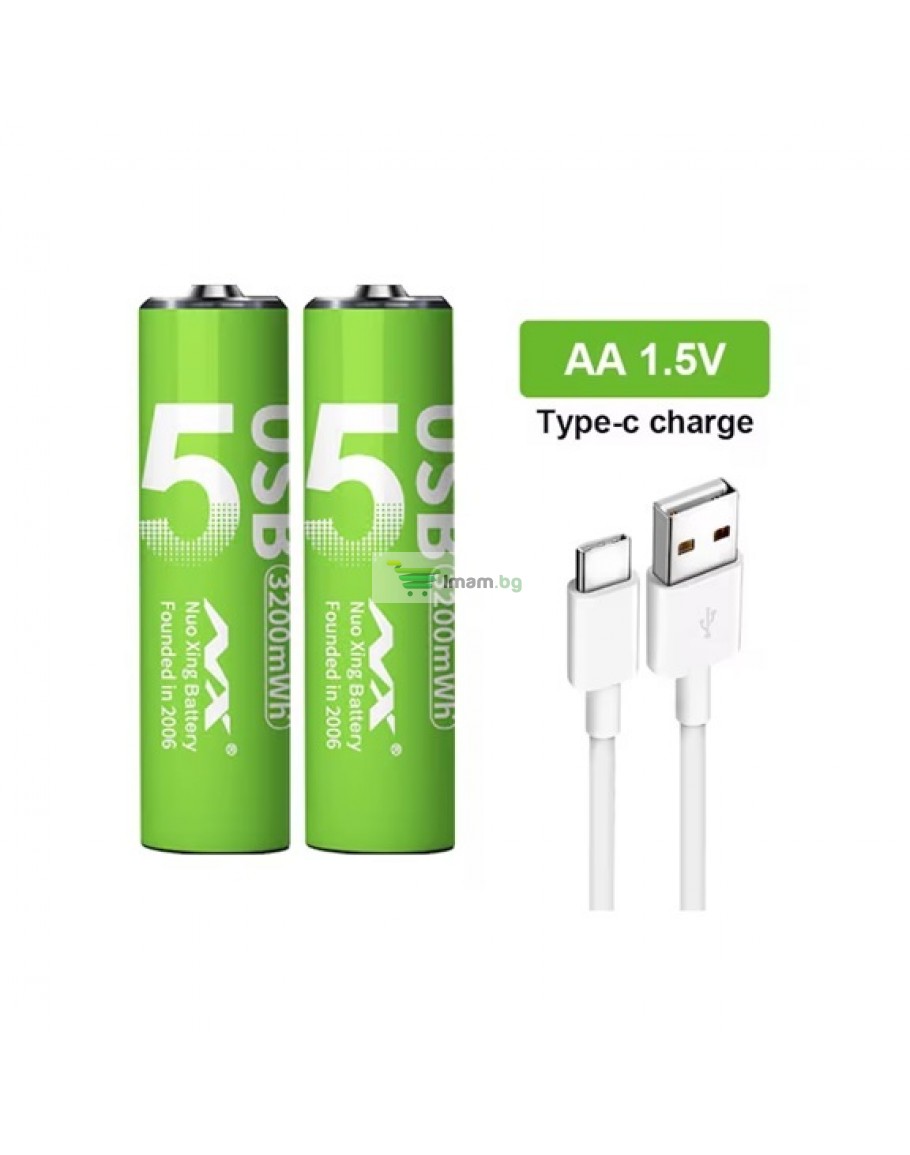 Батерия AA Li-ion 2200mWh 1.5V Quick Charge USB-C к-т 2 броя