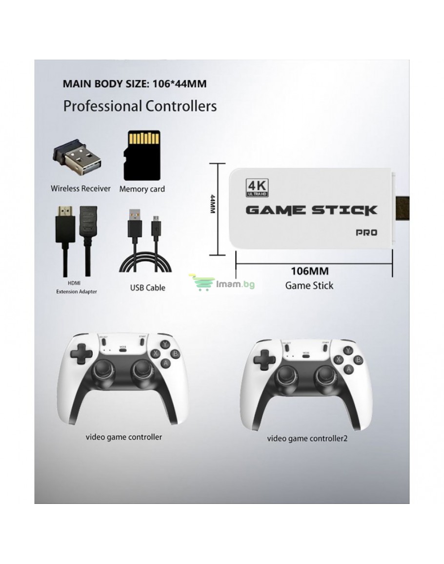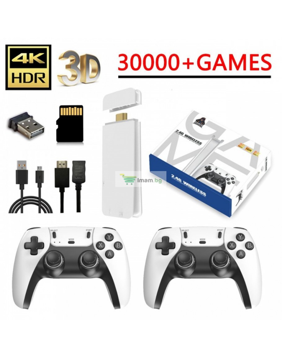 Безжична ретро конзола Game Stick PRO 30 000 видео игри, 64 GB, 2x безжичен контролер 4K Ultra Game