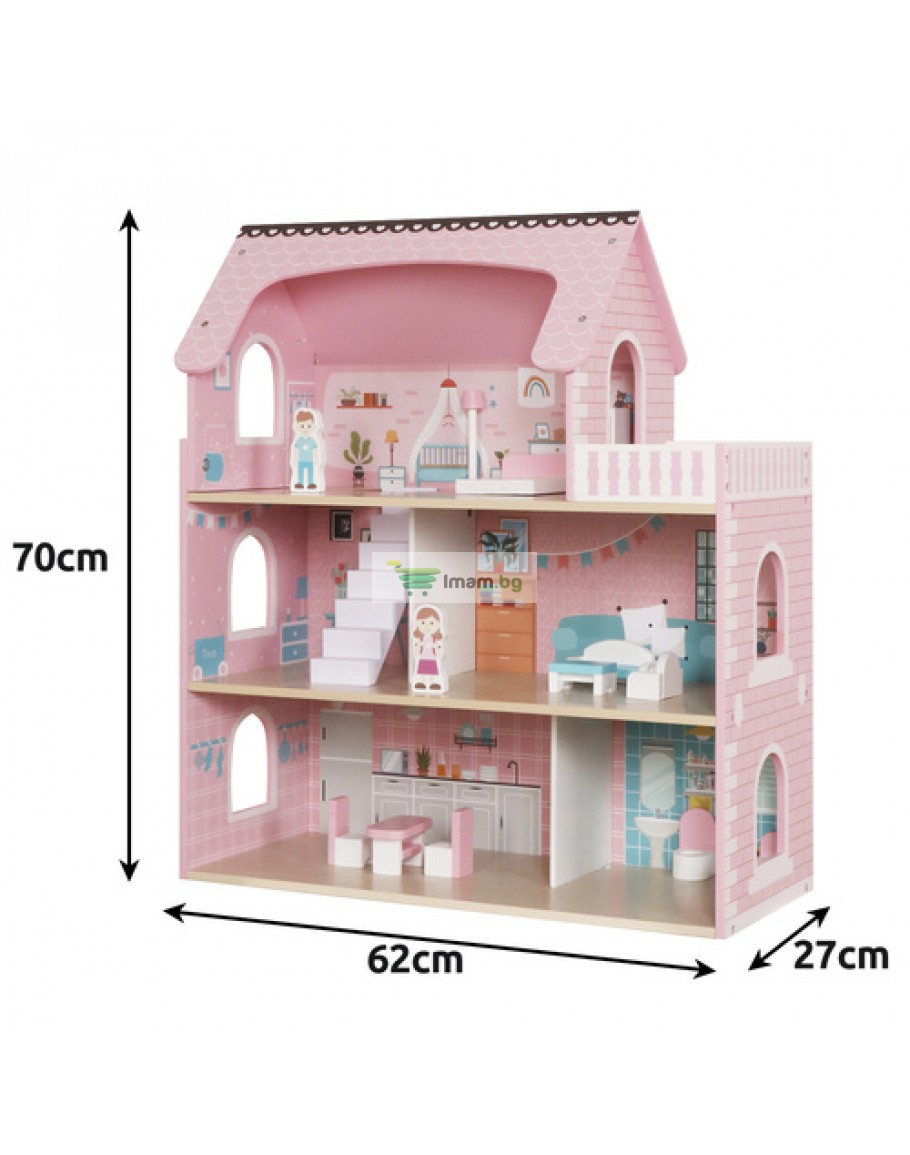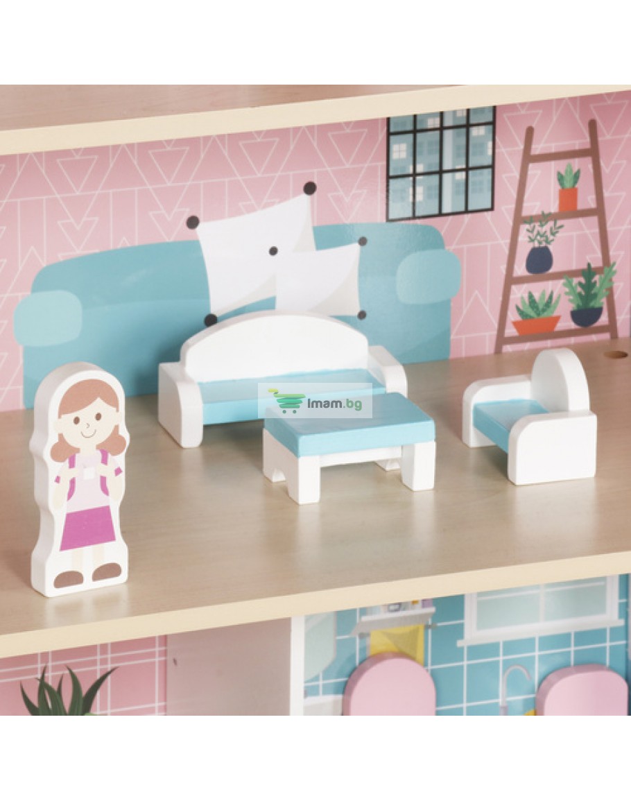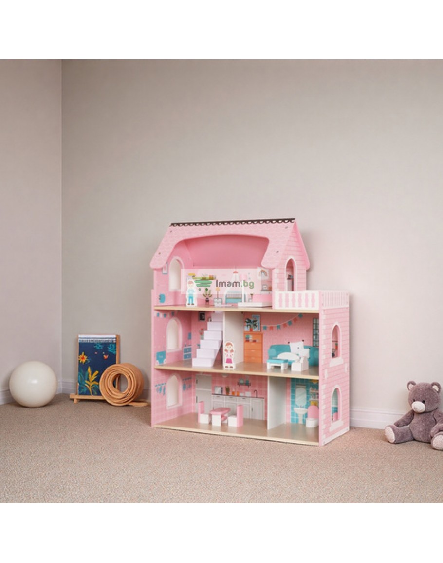 Издръжливост - къщичката за кукли и всички дървени елементи са изключително издръжливи и устойчиви на интензивна игра, благодарение на здравата конструкция те ще издържат много часове творческа игра