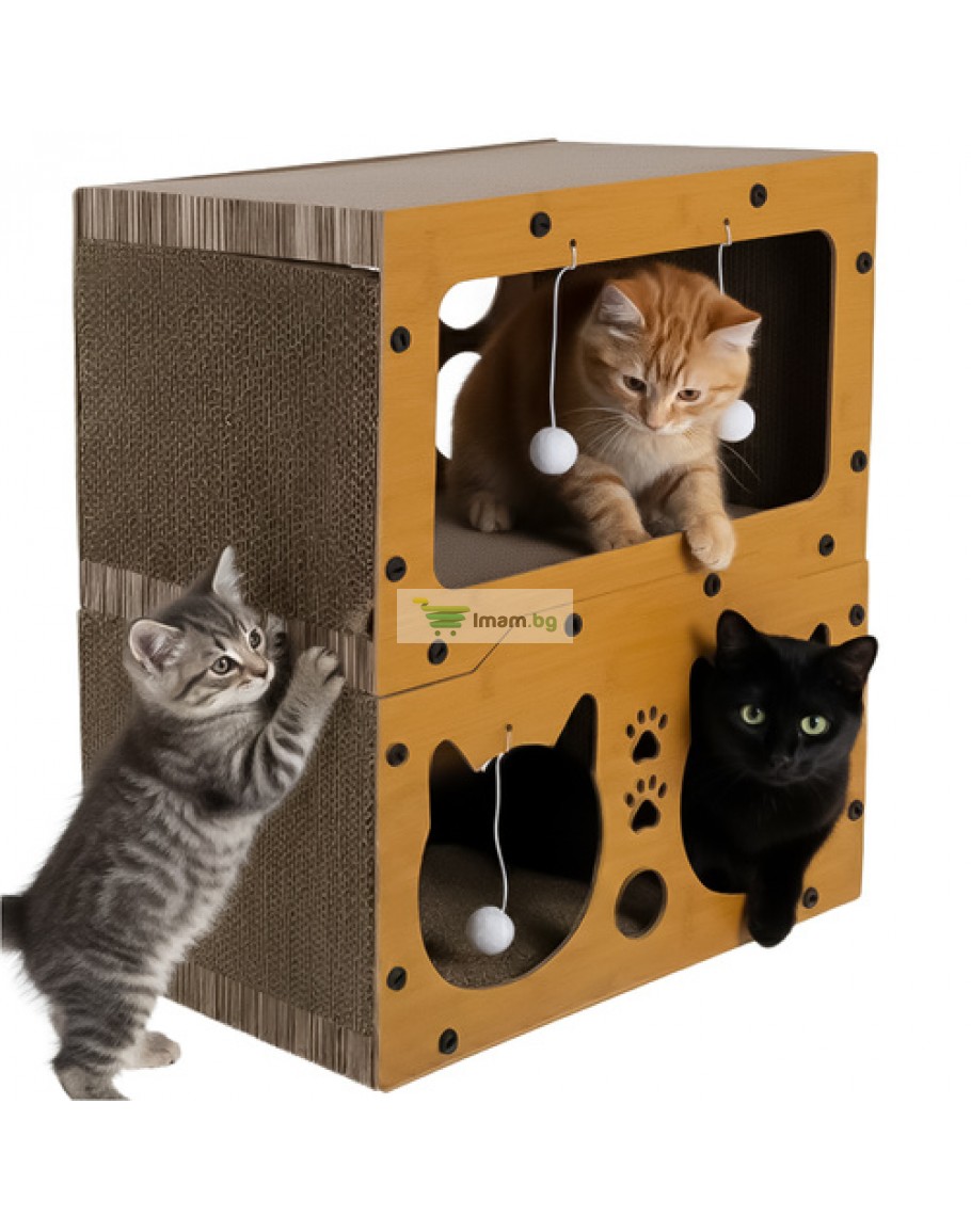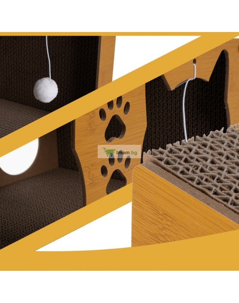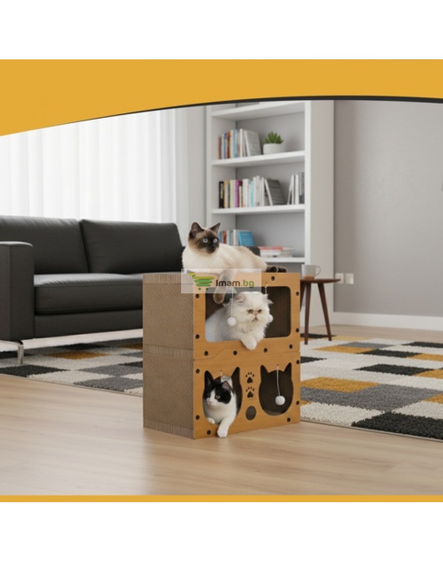 Край на надрасканите дивани, започнете нова глава на мир и радост с вашата котка, драскалката 3в1 с къщичка - комфорт, издръжливост и спокойствие във вашия дом.