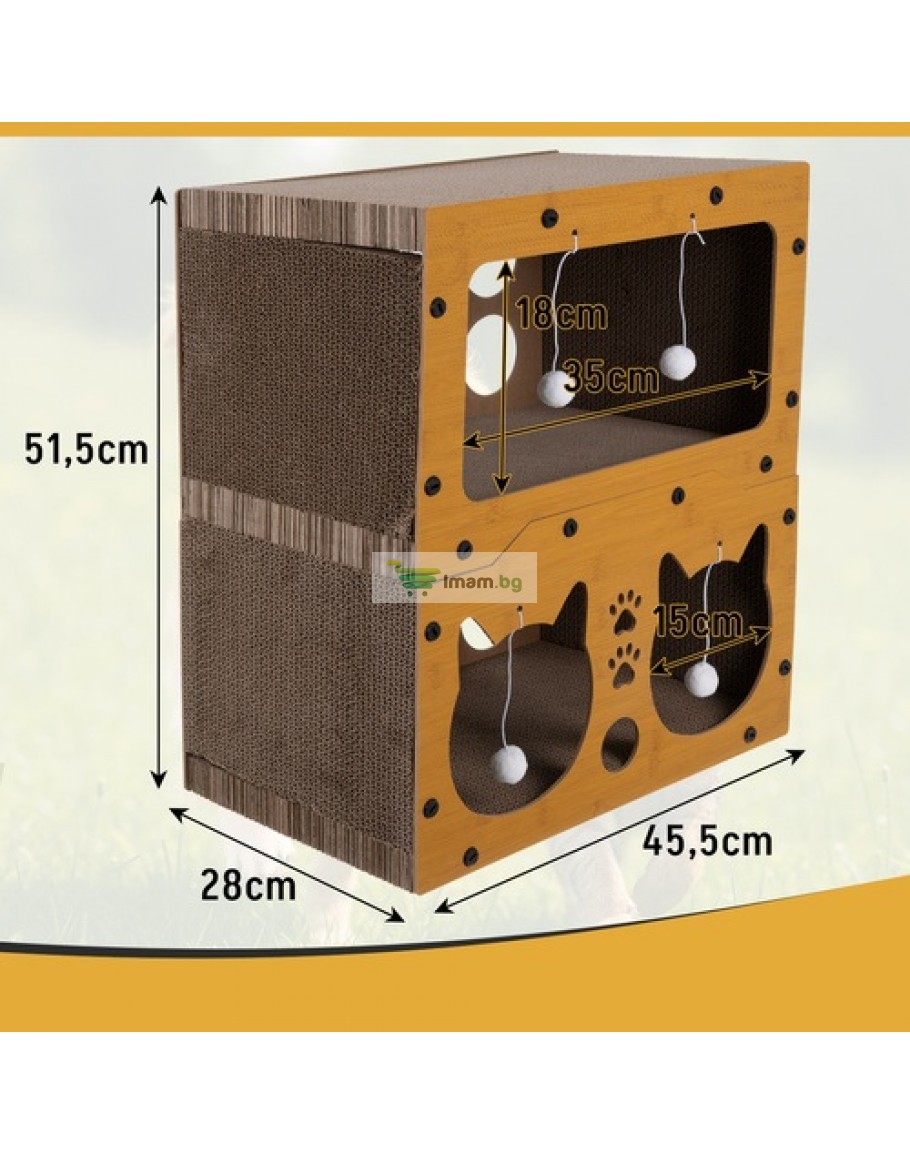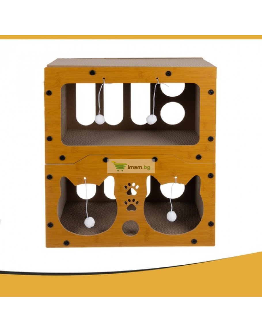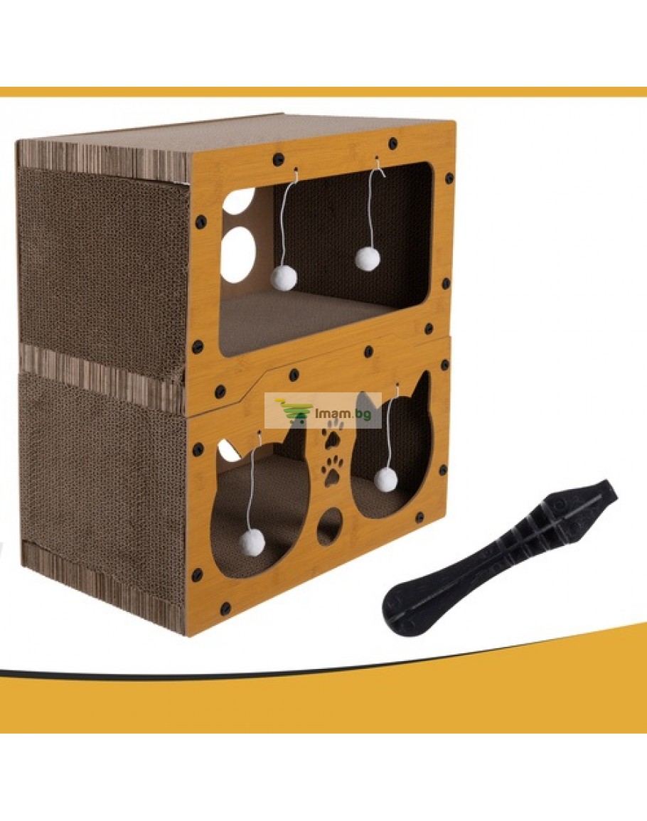 Драскалка за котки двуетажна къща легло с играчки неплъзгащо се