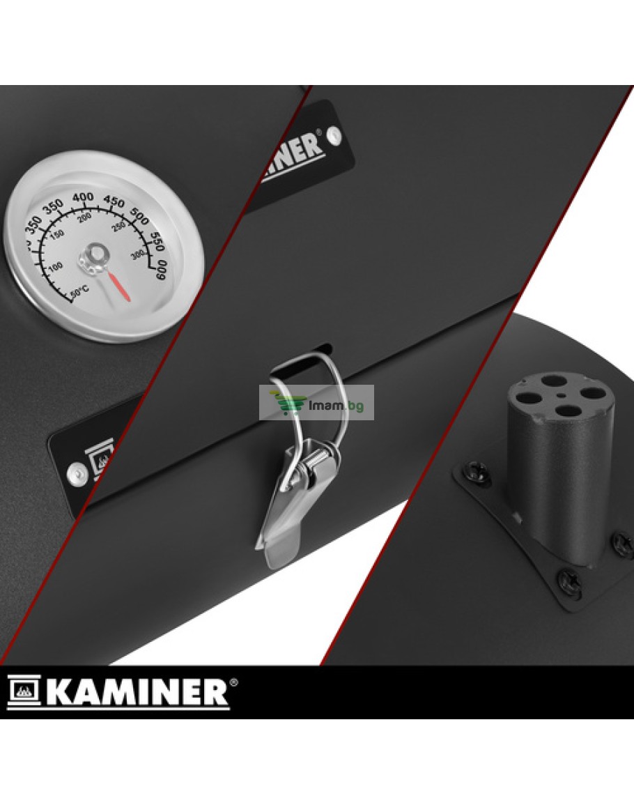 Градинско барбекю скара Kaminer с капак, термометър, 2 решетки, 2 тави
