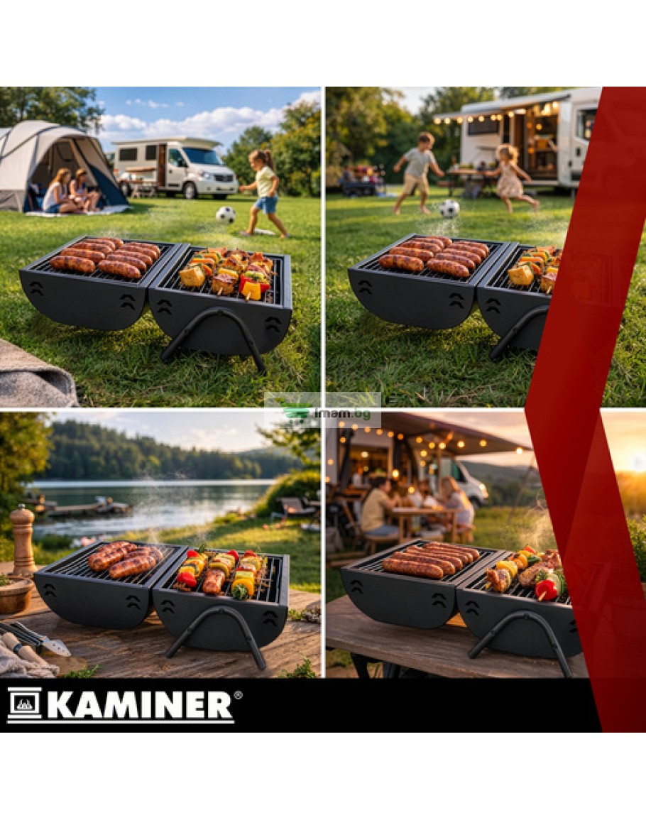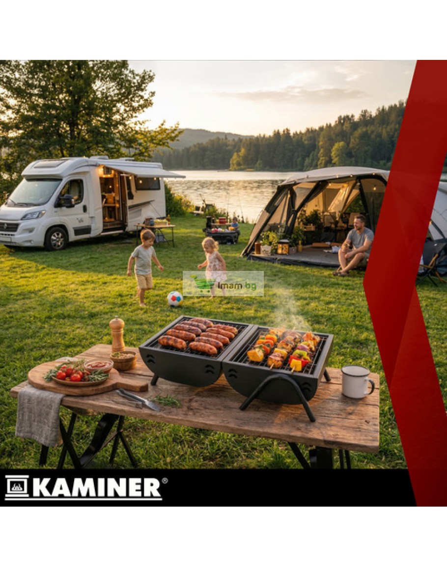 Искате да си направите бързо барбекю в градината, на вашия парцел или на къмпинг, но без да мъкнете голяма скара и да гадаете температурата? Тази къмпинг скара Kaminer съчетава компактен размер с функции, които правят готвенето наистина лесно. Капак с термометър, две решетки и две тави за дървени въглища осигуряват контрол, удобство и постоянни резултати.