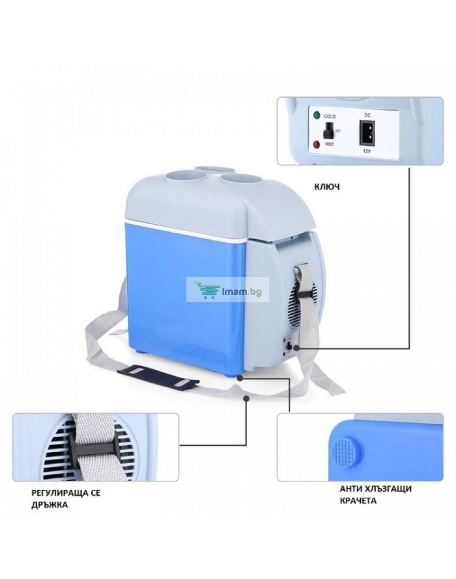 1 х Портативен хладилник за охлаждане и затопляне с вместимост от 7,5 литра