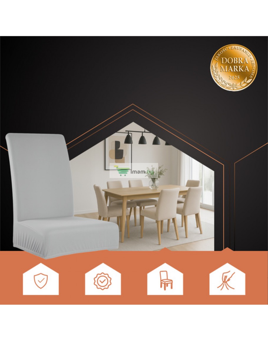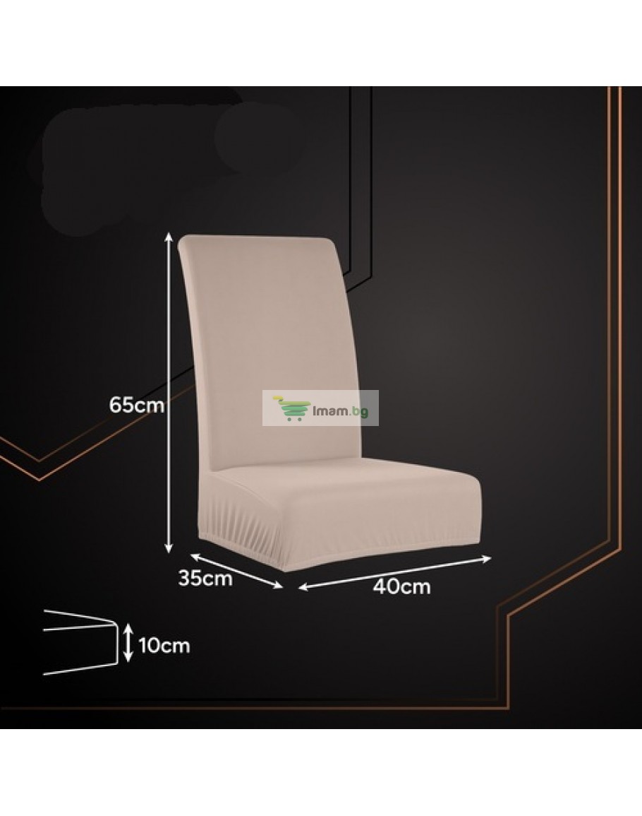 Този калъф е изработен от висококачествен, мек полиестер и еластичен еластан. Той съчетава елегантност, издръжливост и функционалност. Меката, кадифена материя се спуска красиво върху стола, придавайки му уютен и стилен вид, като същевременно го предпазва от замърсявания и повреди . Бежовият цвят се съчетава безпроблемно с разнообразни интериорни дизайни, а универсалният размер го прави идеален за всеки повод. 65x40x35 см е подходящ за повечето стандартни столове, предлагани на пазара .