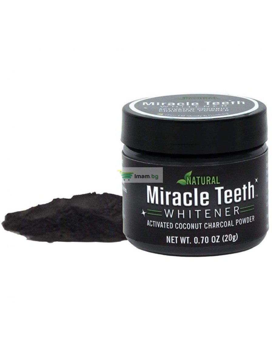 Представяме ви Miracle Teeth, пробивната естествена избелваща система за зъби, направена с активен кокосов въглен, бентонит на прах и органично масло от портокалови семена, което повдига, извлича и премахва години на пожълтяване и петна! Активният кокосов въглен на прах - помага за