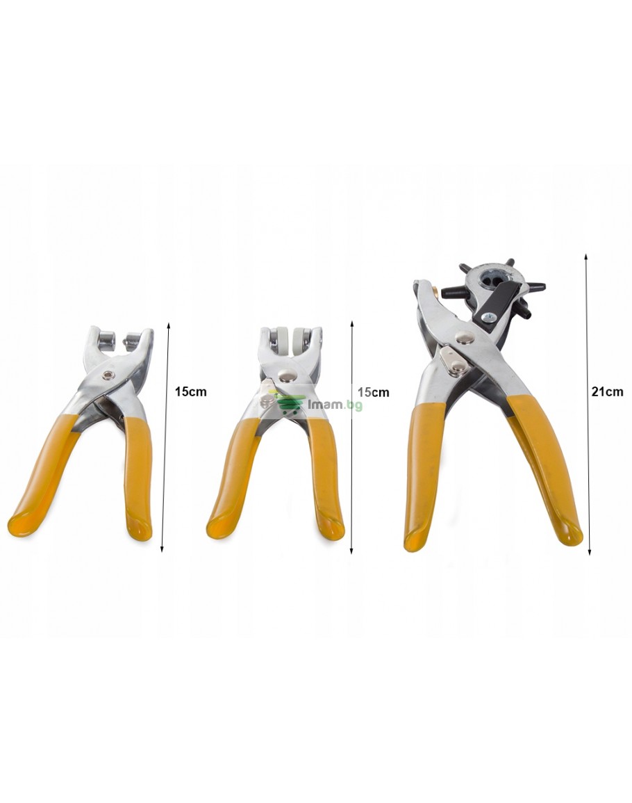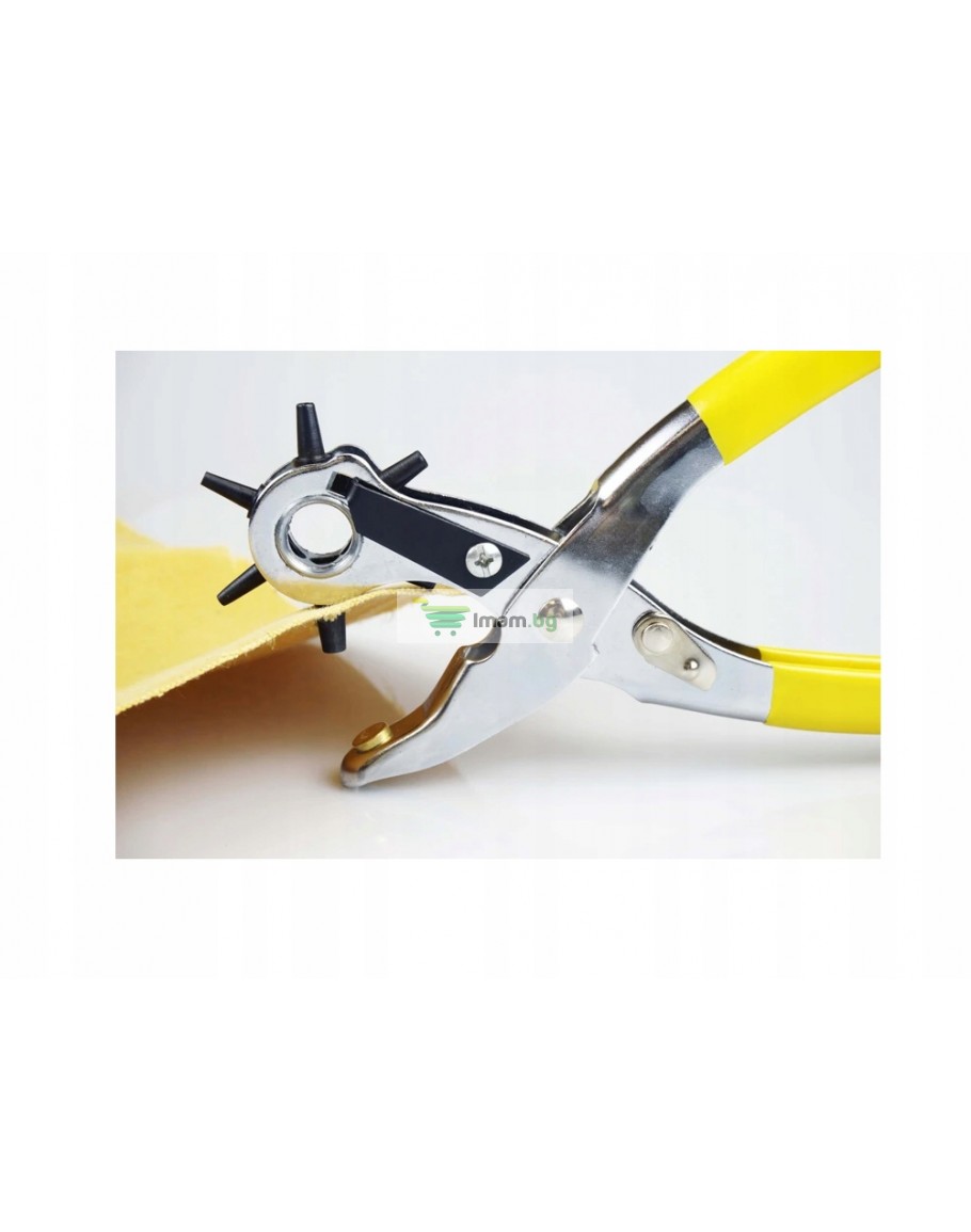 Клещи револверни - това е ротационен инструмент за правене на отвори с различни размери: 2 мм, 2,5 мм, 3 мм, 3,5 мм, 4 мм, 4,5 мм. С този инструмент можете лесно да правите отвори в кожа, текстил, пластмаса, картон и др.
