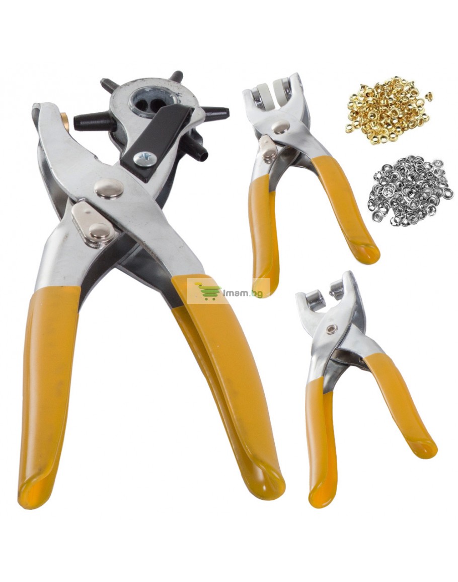 Комплектът инструменти за кожени изделия е набор от инструменти, с които можете лесно да поставяте копчета, закопчалки и да правите дупки в колани, обувки и др.