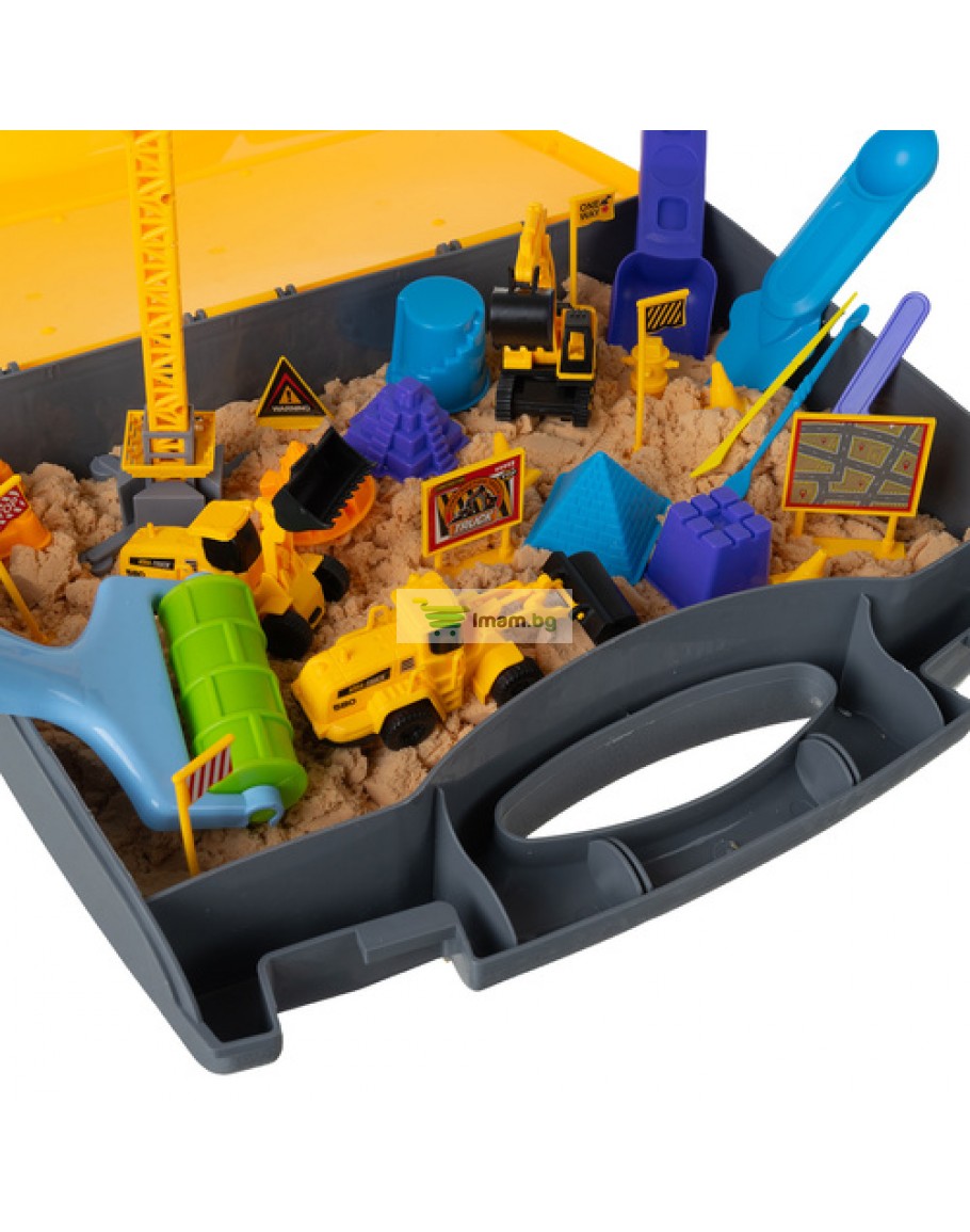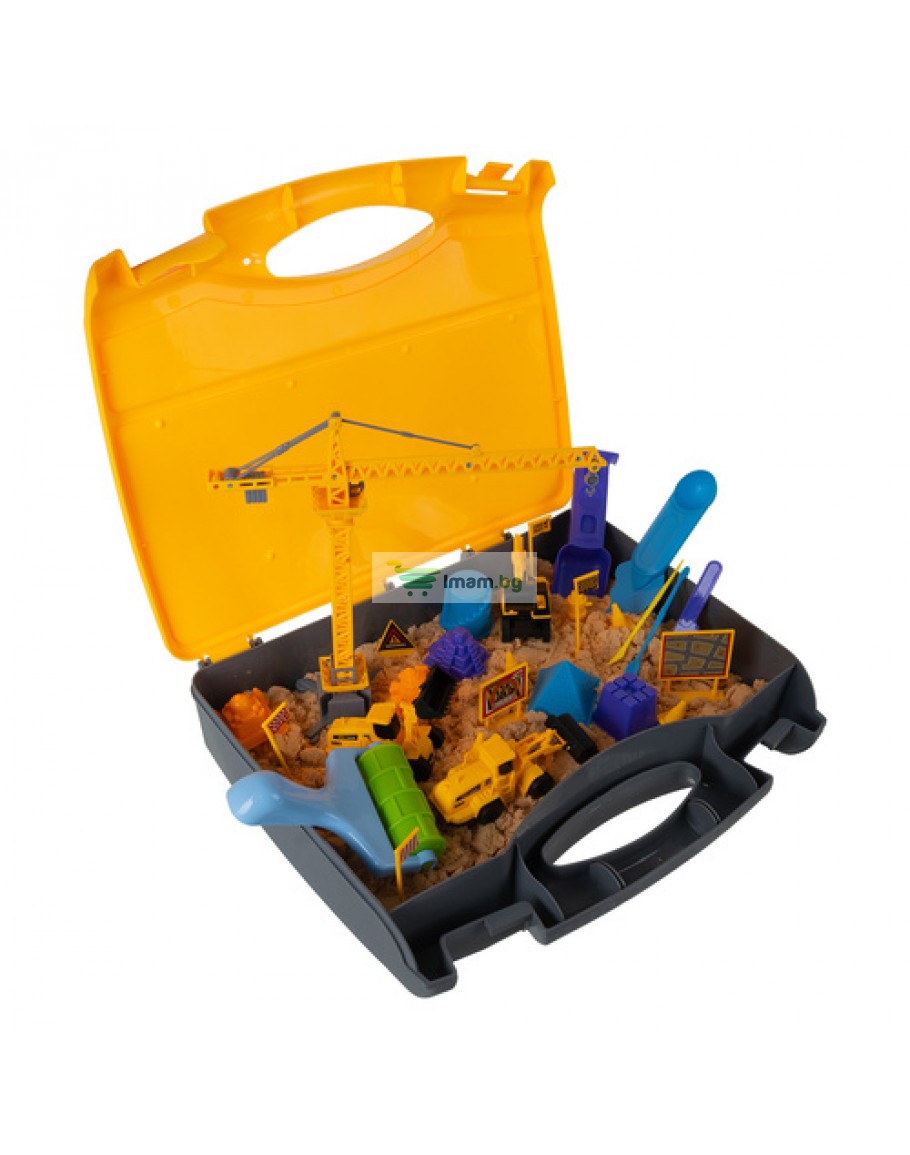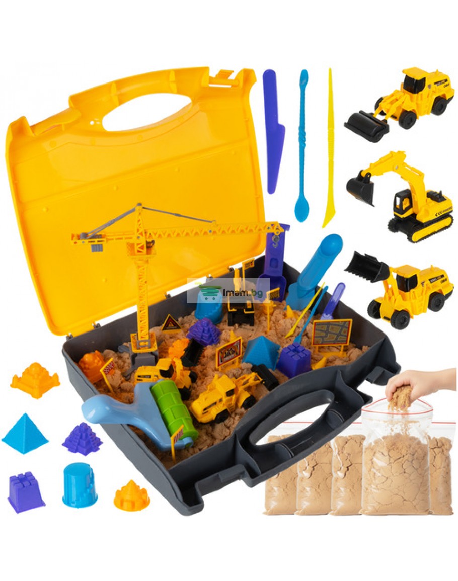 Открийте уникалния комплект за изграждане на пясък XXL, който ще превърне всеки момент от играта в незабравимо приключение. Здравият куфар служи и като мобилна пясъчник, която можете да сглобите само за секунда, за да започнете да строите строителна площадка, пълна с интерактивни машини и аксесоари. Тази играчка ще помогне на детето ви да се почувства като истински строител, развивайки сензорни умения, креативност и ръчна сръчност, докато вие избягвате бъркотията!
