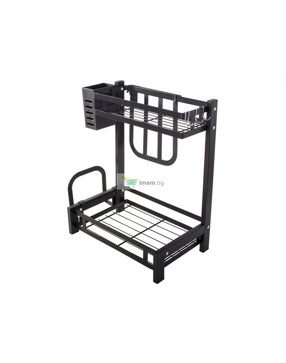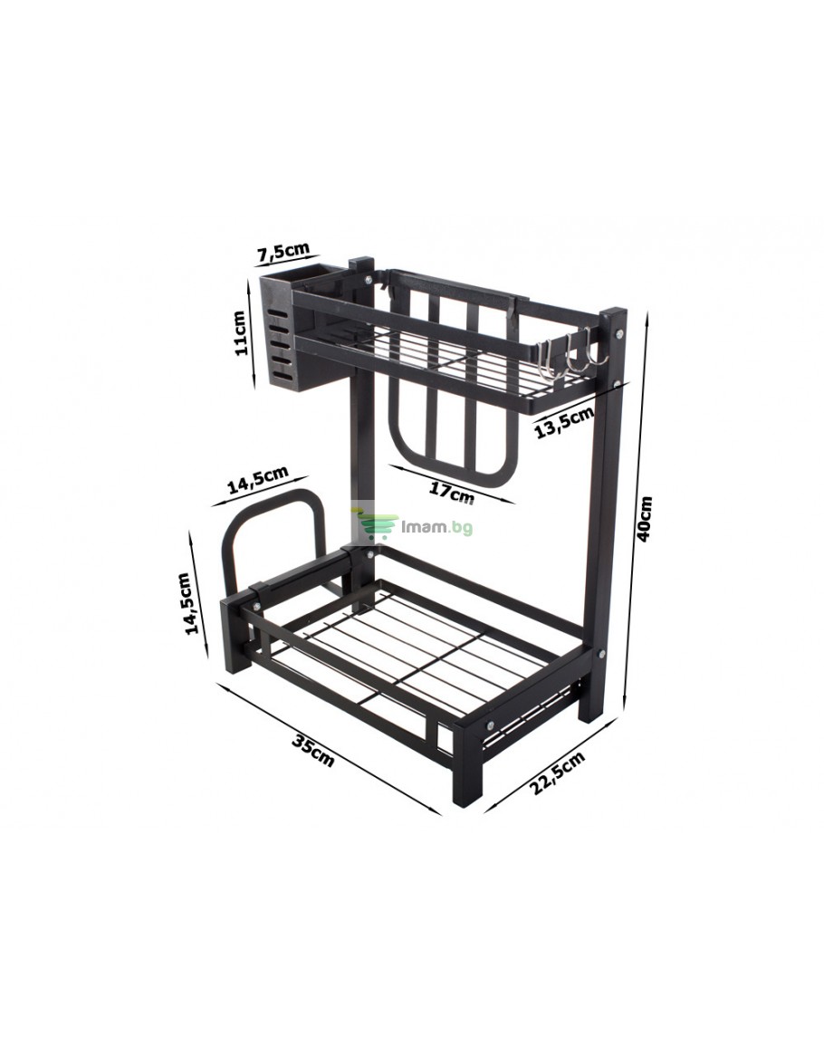 Кухненският органайзер е изработен от висококачествен метал с прахово покритие. Той е устойчив на повреди от влага, причинени от съхранението на мокри съдове. Стабилната конструкция позволява поставянето на дори по-тежки предмети върху органайзера.