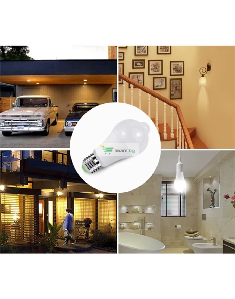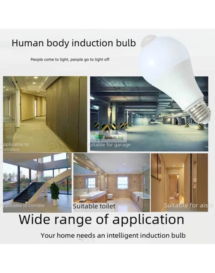LED крушка със сензор за движение, 12W енергоспестяваща крушка, крушка със светлинен сензор