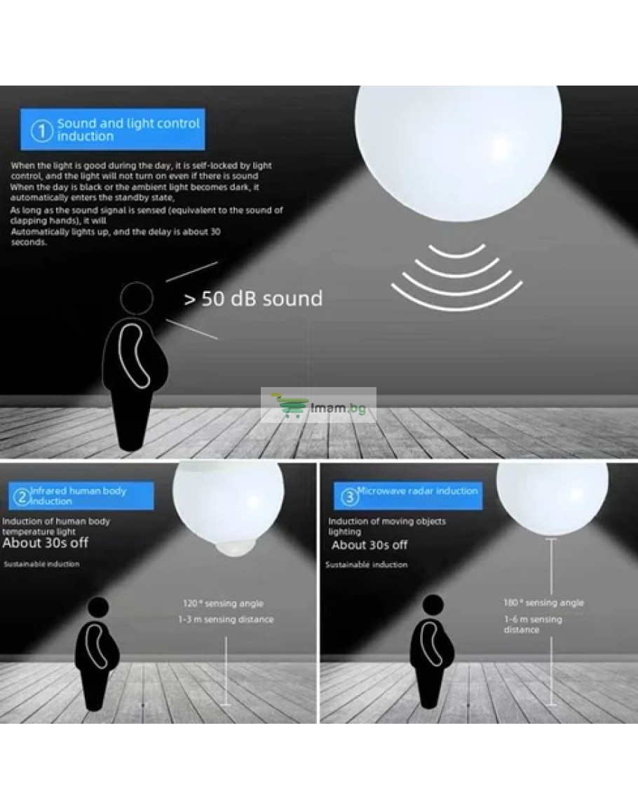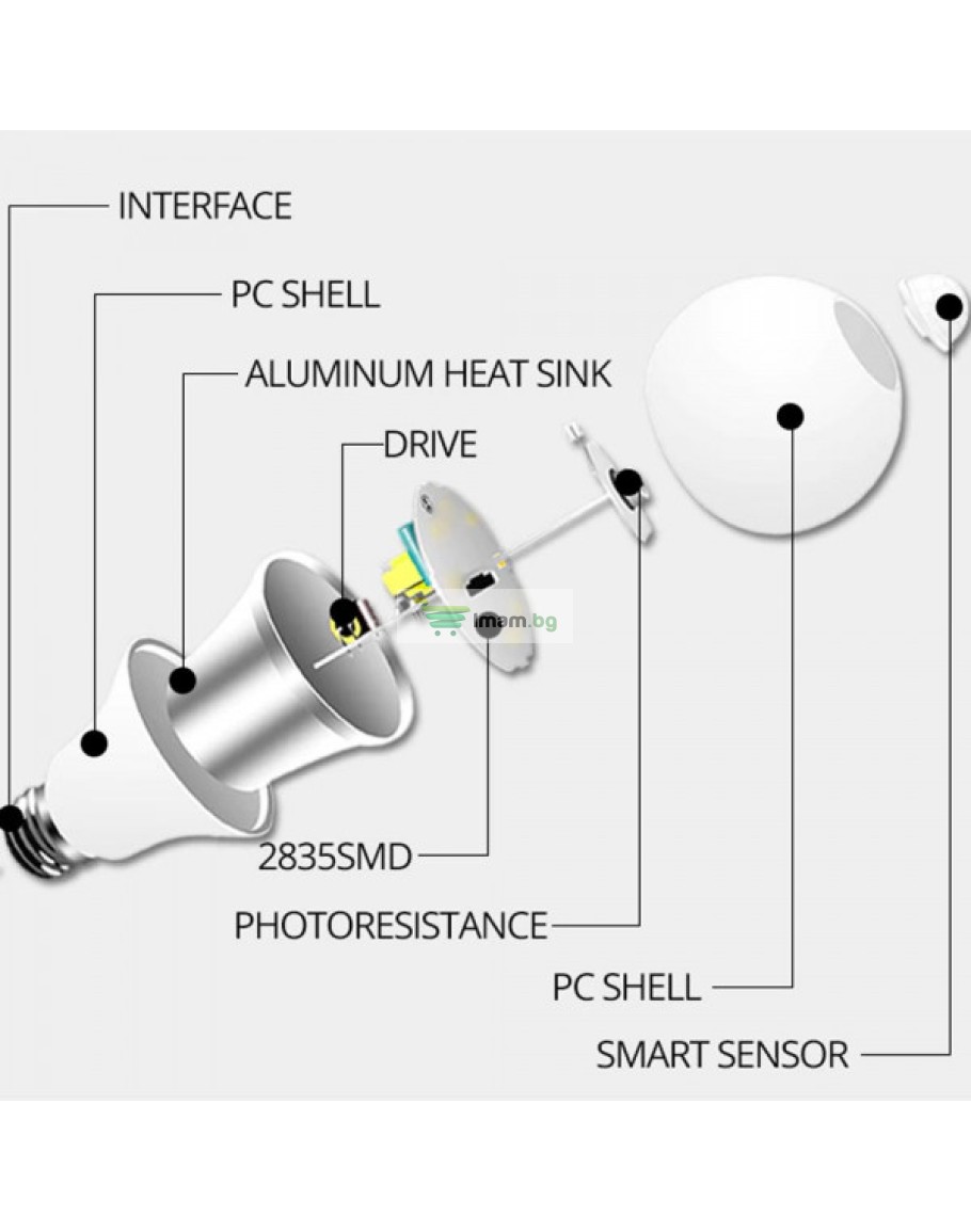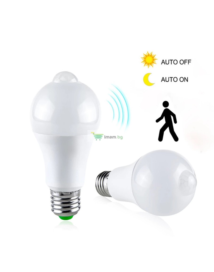 Автоматично включване/изключване на тъмно: сензорът за движение, наричан още пасивен инфрачервен сензор, е най-често използваният тип сензор за движение. Светодиодната крушка с PIR сензор използва инфрачервена технология и реагира на температурни промени, т.е. светлината се включва/изключва автоматично, когато детекторът засече движение или липса на движение на човек/предмет.