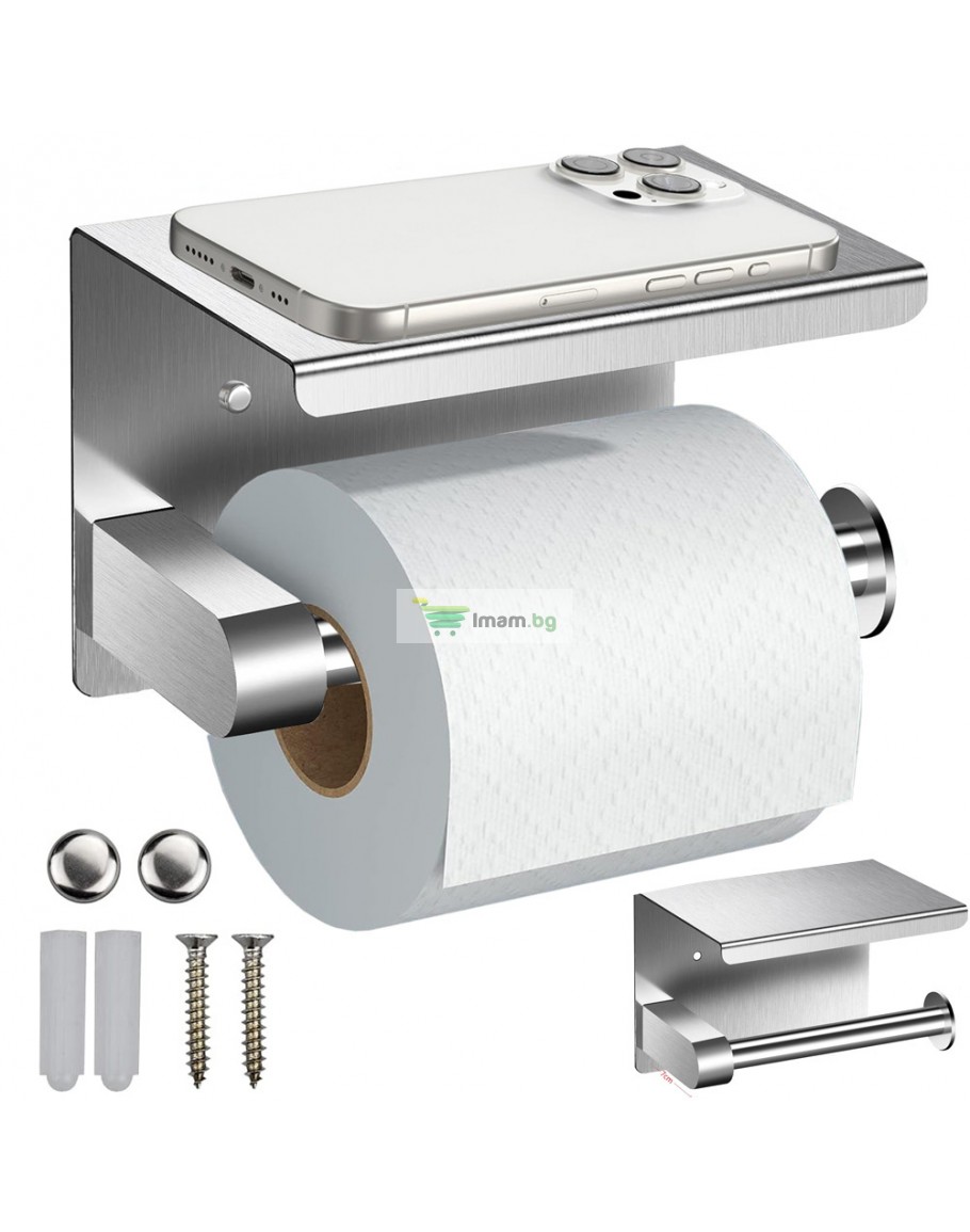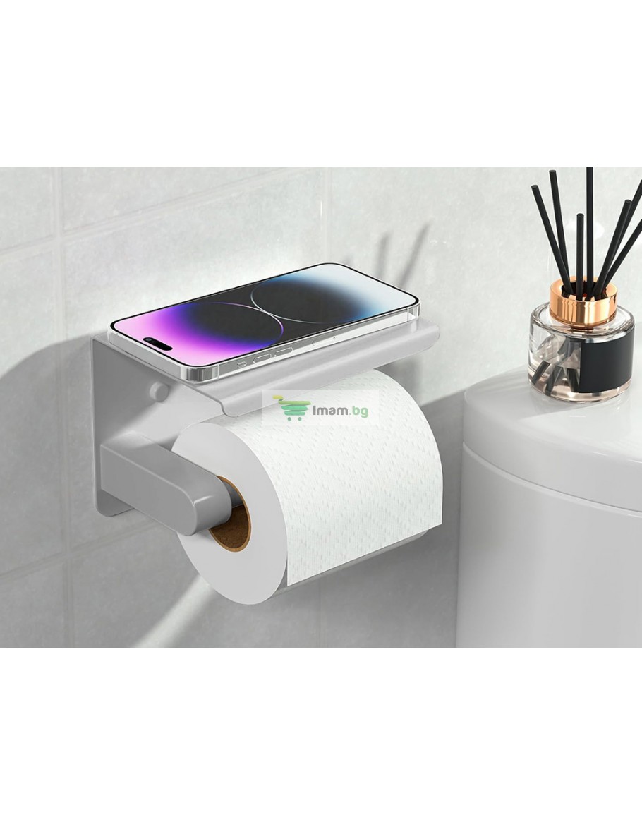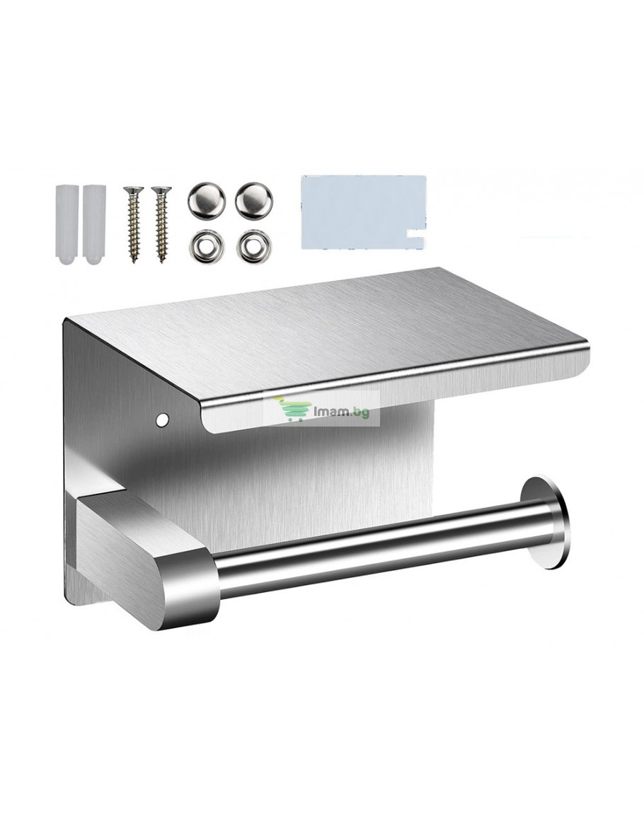 Метална поставка за тоалетна хартия с рафт за телефон