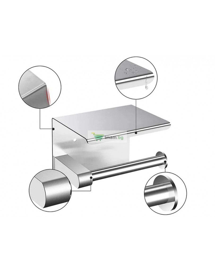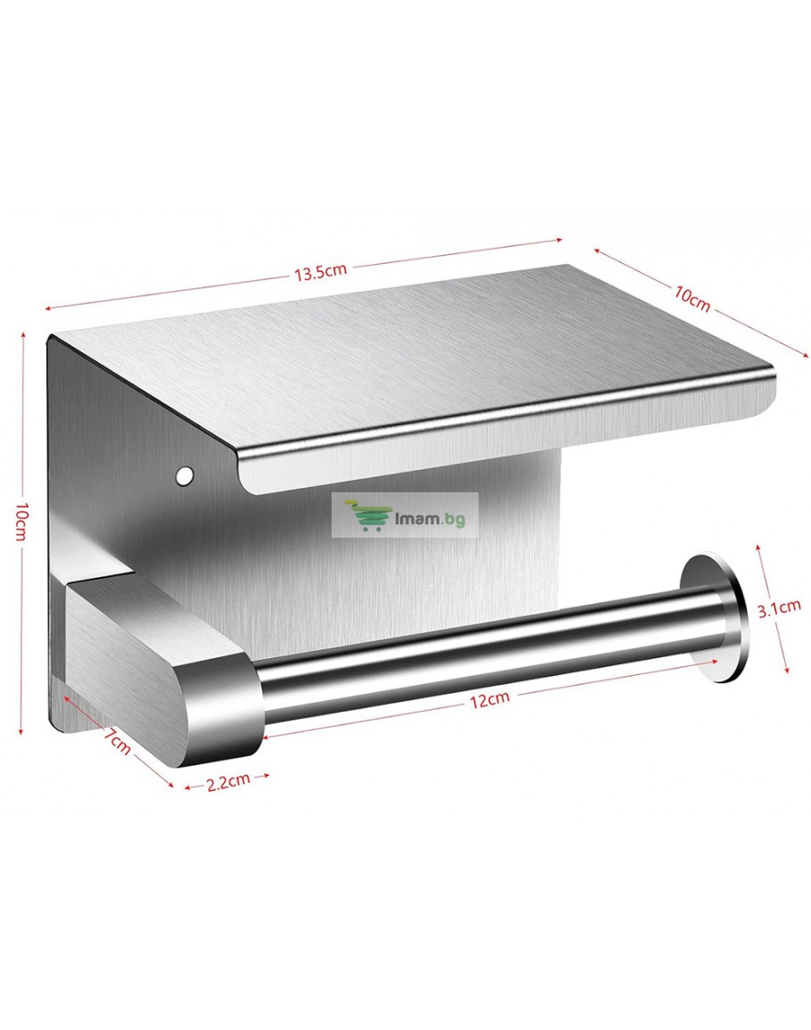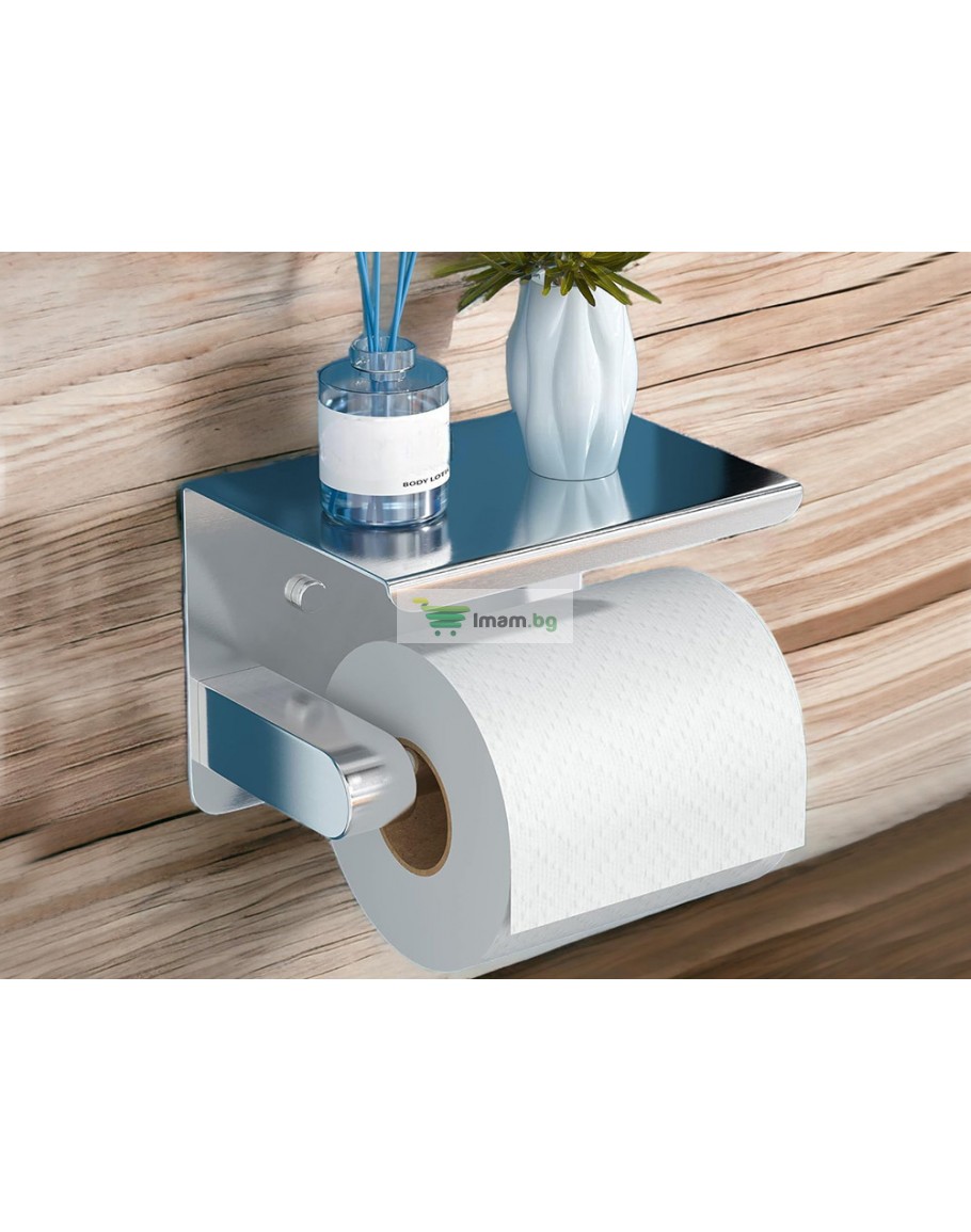 Метална поставка за тоалетна хартия с рафт за телефон