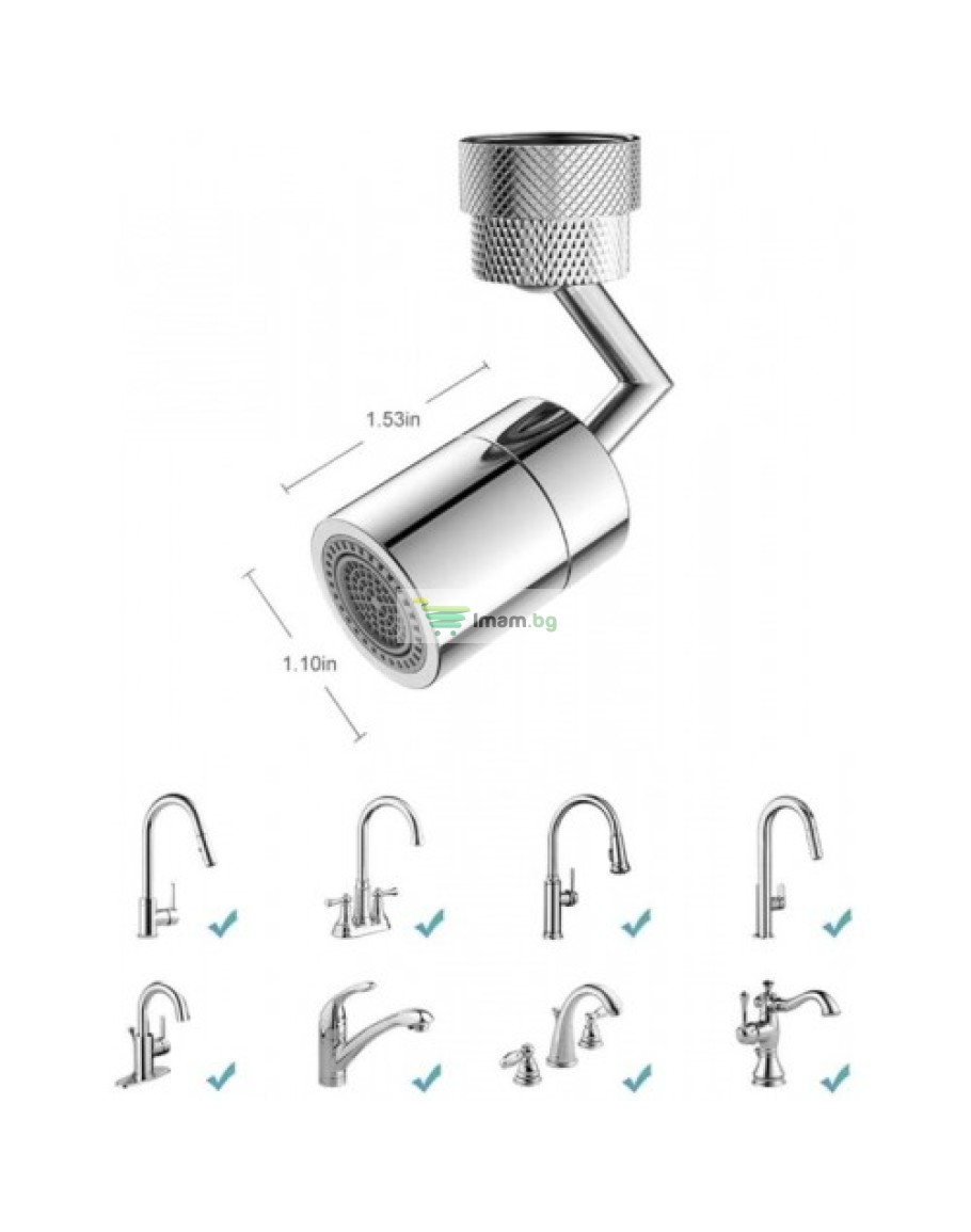 Накрайник за чешма въртящи се на 720 градуса с 2 вида водна струя