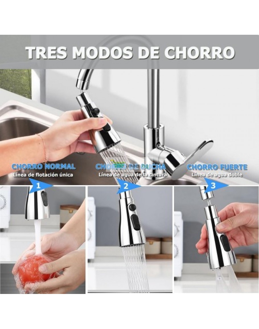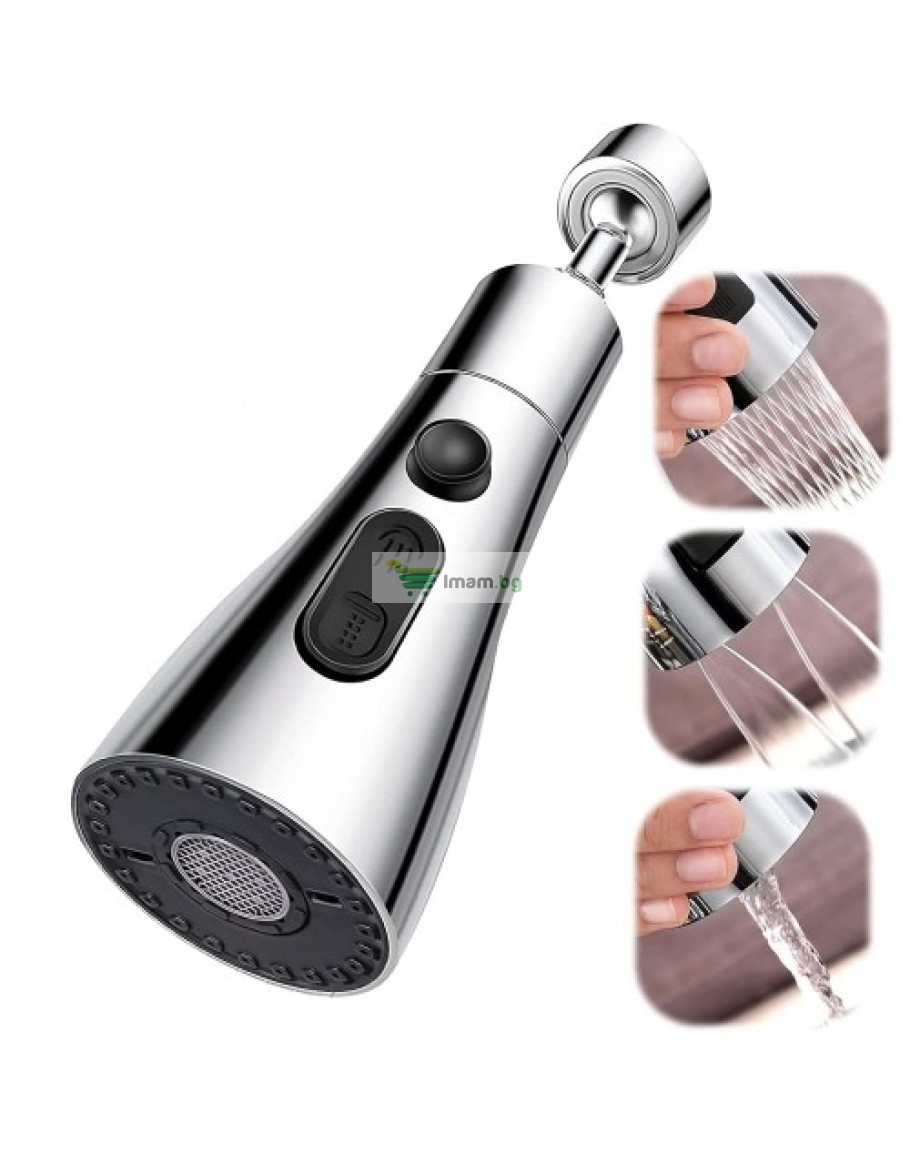3 режима на изпускане на вода: Натиснете кръглия бутон на накрайника за по-високо налягане на струята, за да почистите упоритите петна по съдовете по-лесно. Функцията за с широк ъгъл на разпръскване има голяма площ на пръскане и може да се използва за изплакване. Гладкият воден стълб може да предотврати пръскане на вода и се използва за ежедневно измиване на плодове или измиване на ръце.