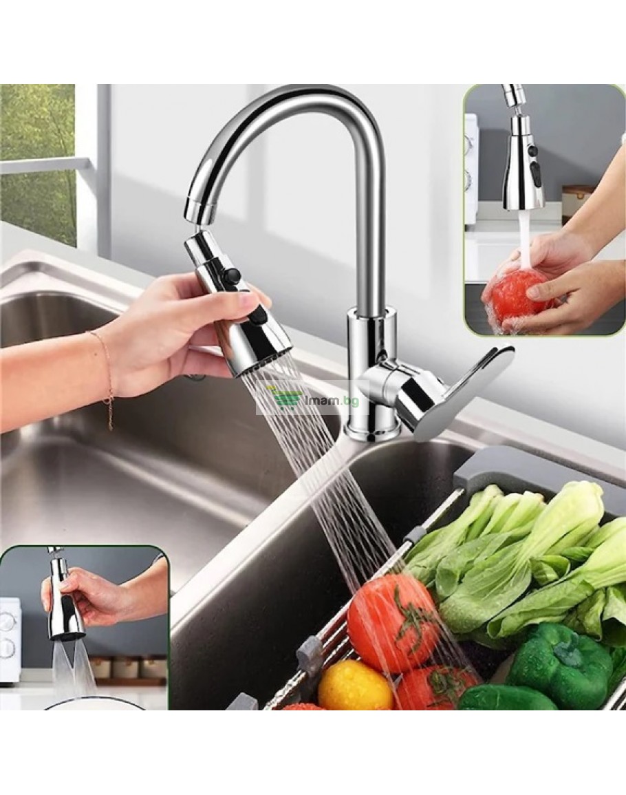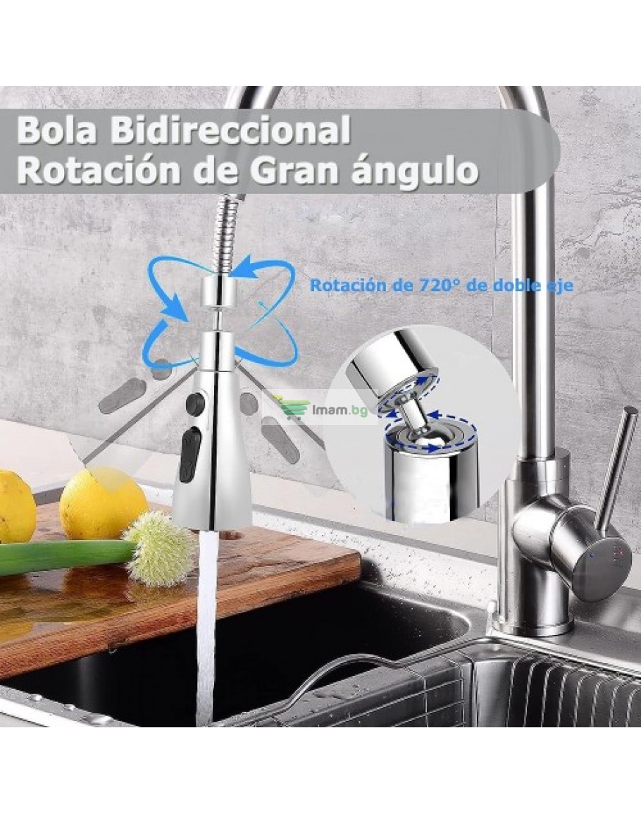 Въртене на 360° и разглобяем дизайн: Накрайника е с 360° въртене благодарение на конструкцията със стоманена топка, която се върти под широк ъгъл, за да почисти всеки ъгъл на мивката гъвкаво и удобно. Водоспестяващият 360 градуса въртящ се адаптер може да се сваля, така че имате две опции за инсталиране. Единият е без адаптер за завъртане на 360, за изтеглящи се кранове, друг е с адаптер за завъртане на 360, за кранове с външен ход 22 мм.