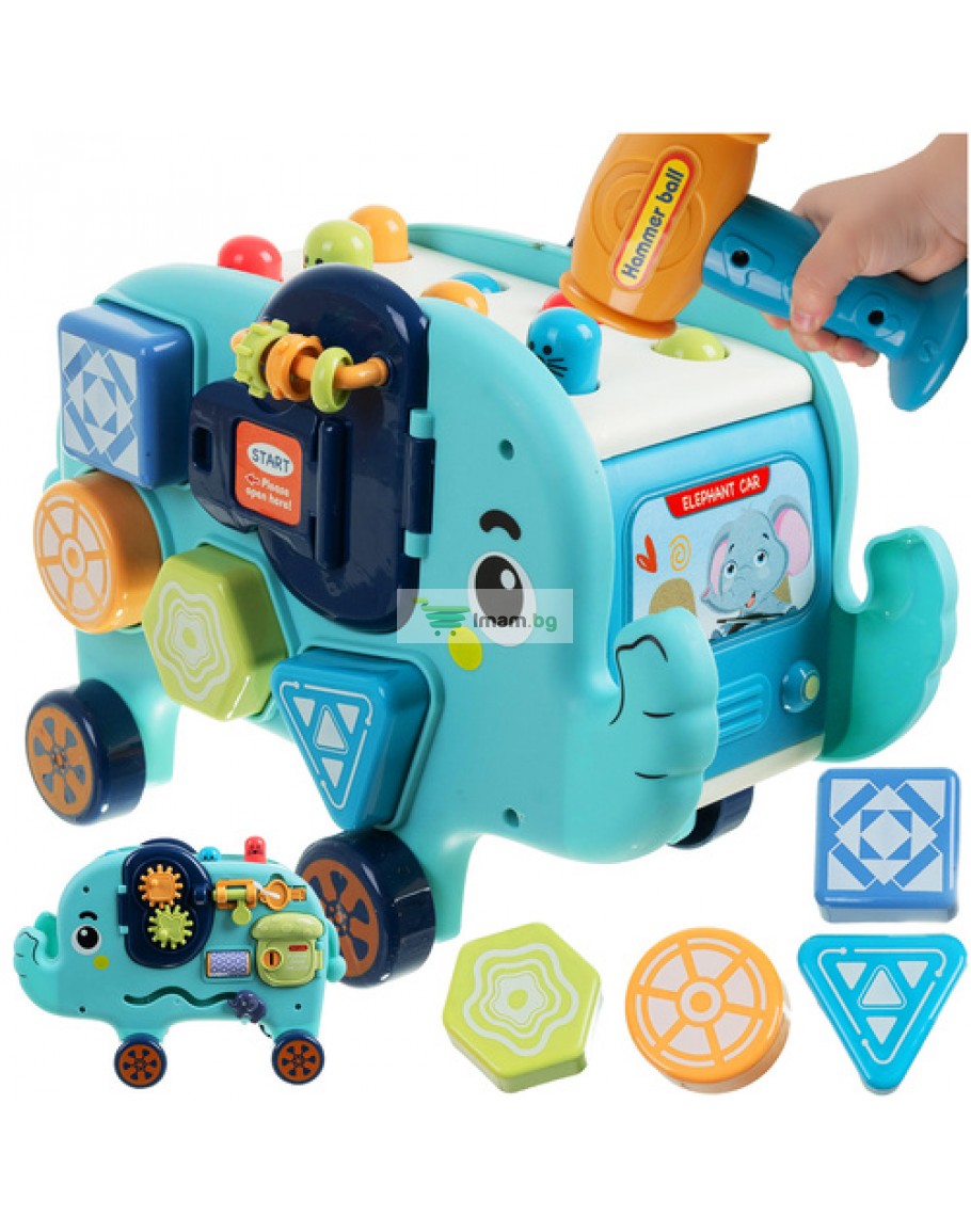 Образователен слон сортер пъзел, манипулационна дъска, блокчета, чук