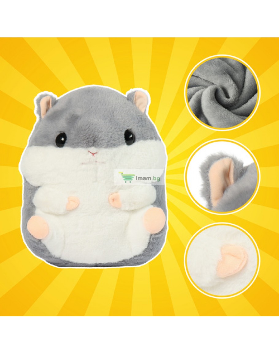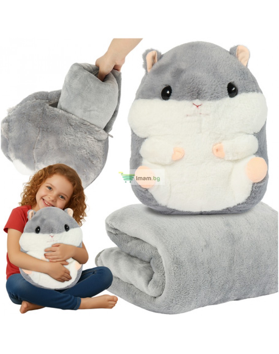 Сладък хамстер 3 в 1. Това е одеяло, възглавница и плюшена играчка в едно - мек, топъл и винаги готов за гушкане. В коремчето му е скрито одеяло, което може да се разгъне или прибере за секунди, създавайки ред и комфорт без усилие. Той е идеалният спътник за сън, пътуване и игра, давайки на детето ви чувство за сигурност и радост всеки ден.