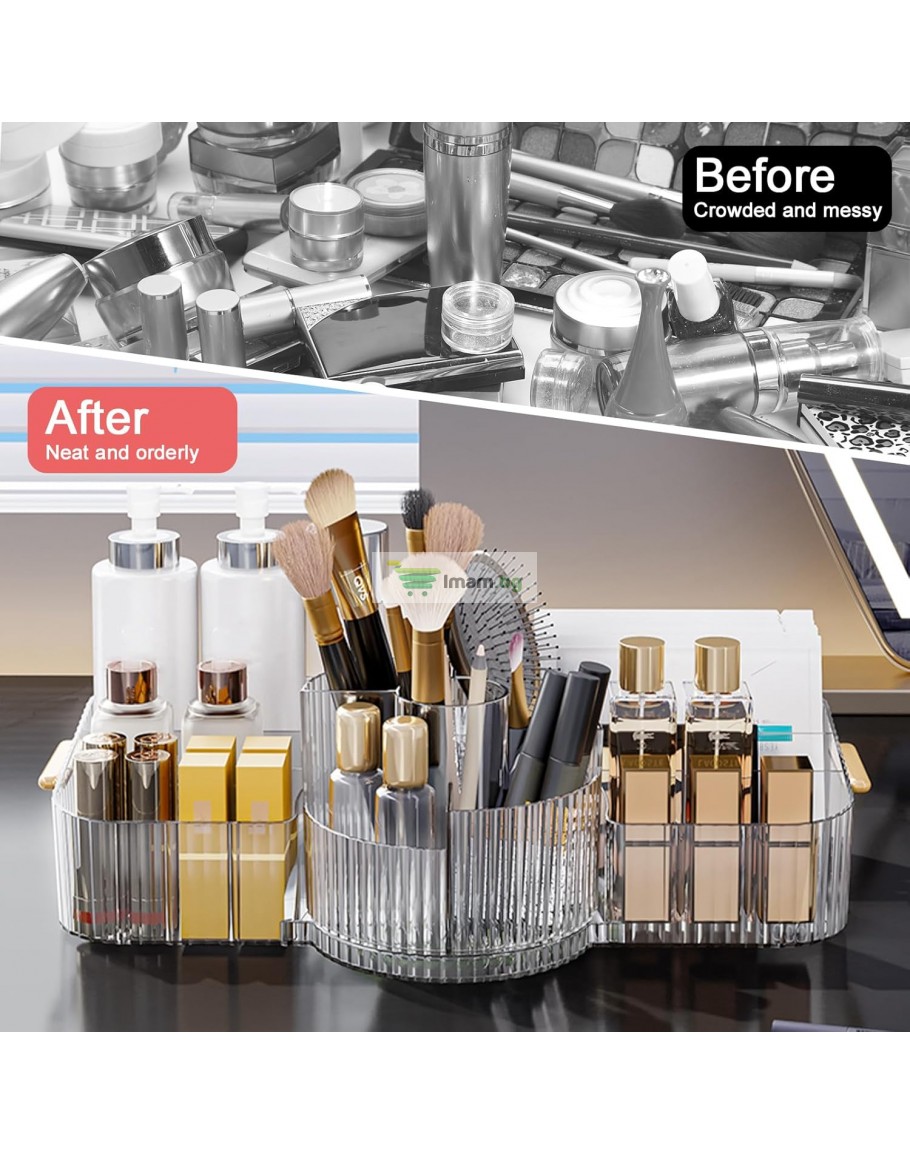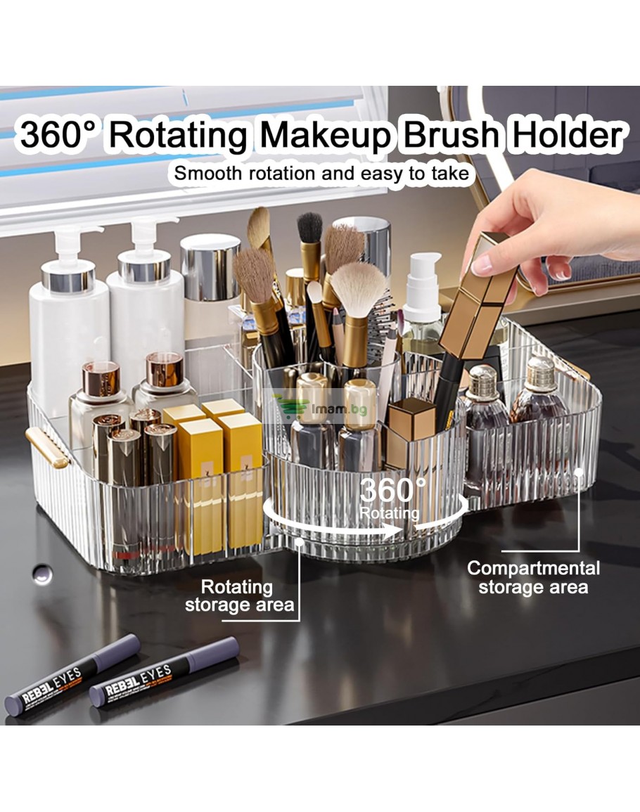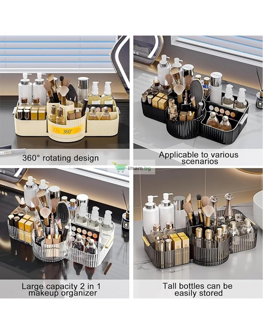 ПЕРФЕКТЕН ПОДАРЪК: Нашият въртящ се органайзер за гримове за тоалетка без усилие допълва всеки декор на стаята и поддържа ред, като същевременно спестява място на плота. Неговият ексклузивен и елегантен дизайн го прави перфектен подарък за приятели, дъщери, съпруги, подходящ за празници като Коледа, Свети Валентин, рождени дни и други.