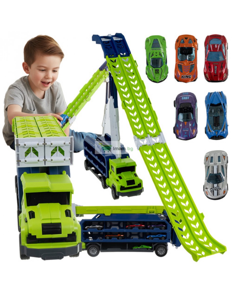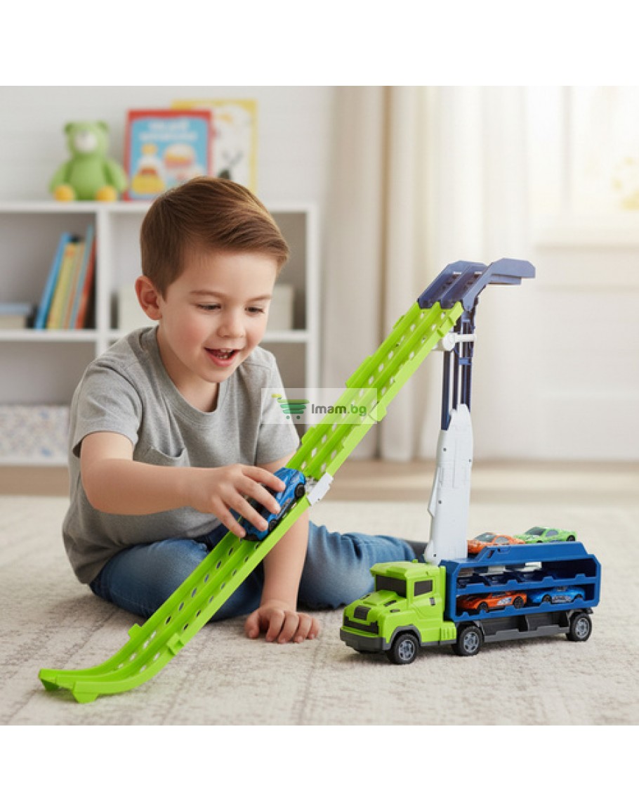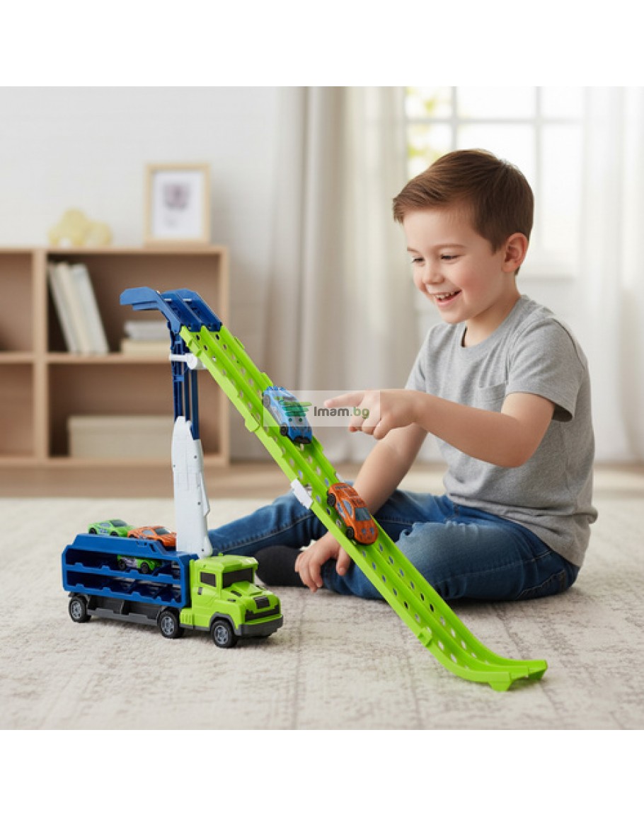 Пързалка камион автомобилна писта гараж за колички играчки колички