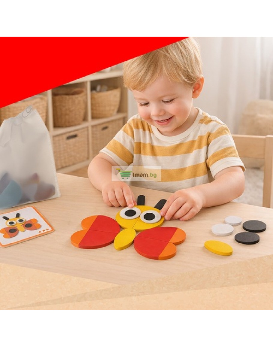 УЧИ – геометричните фигури за деца са чудесно забавление за малко дете. Разнообразните цветове на отделните елементи привличат вниманието на малкото дете, което се фокусира върху играта и същевременно се учи на прецизност и търпение.