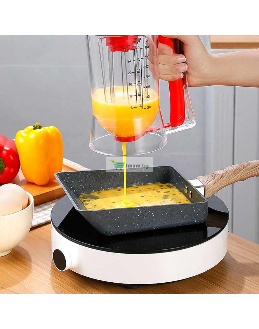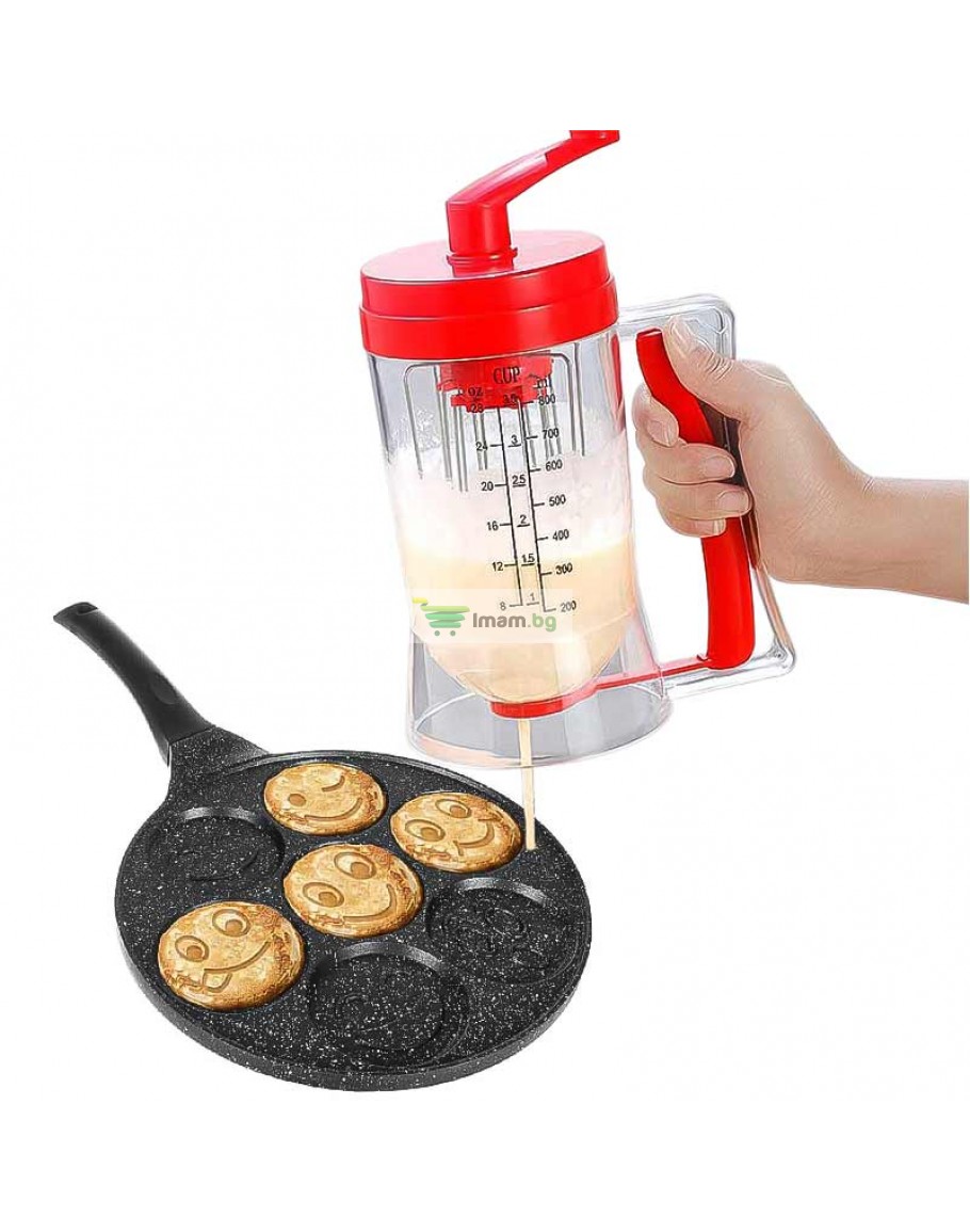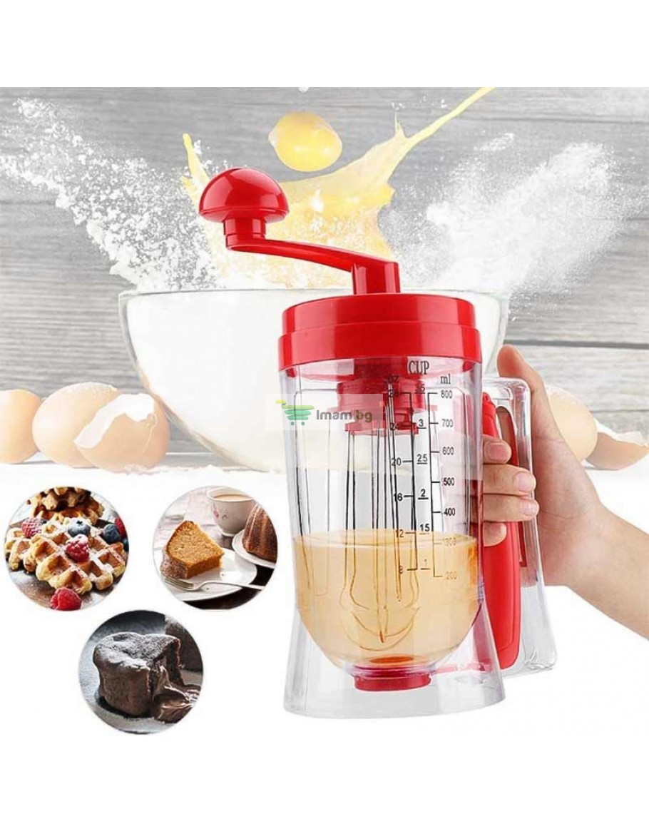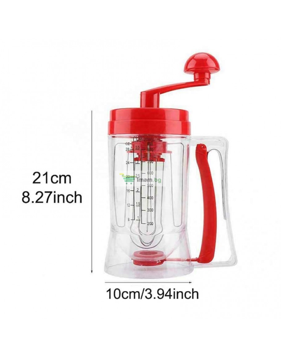Ръчен уред за палачинки и мъфини с диспенсър и дръжка за миксер