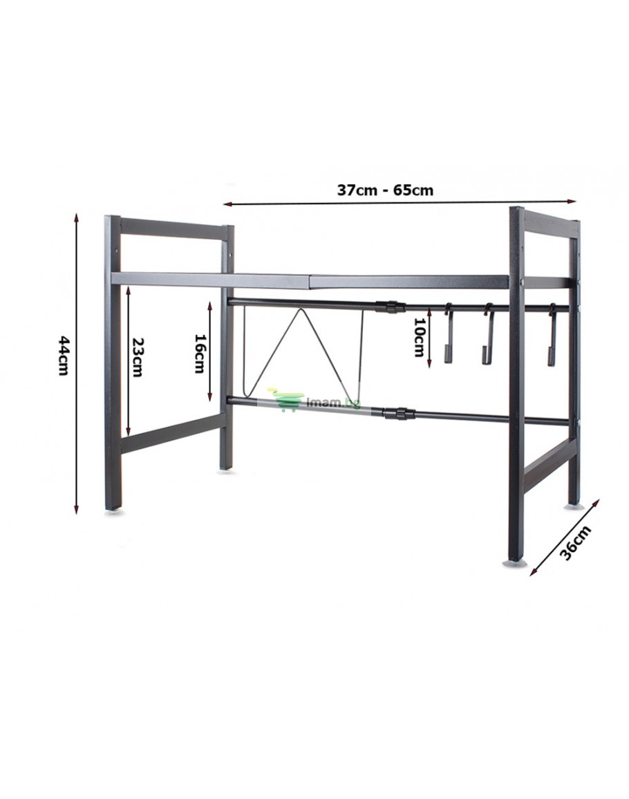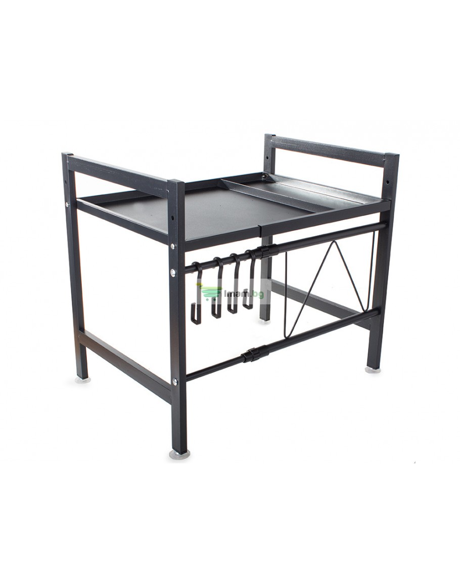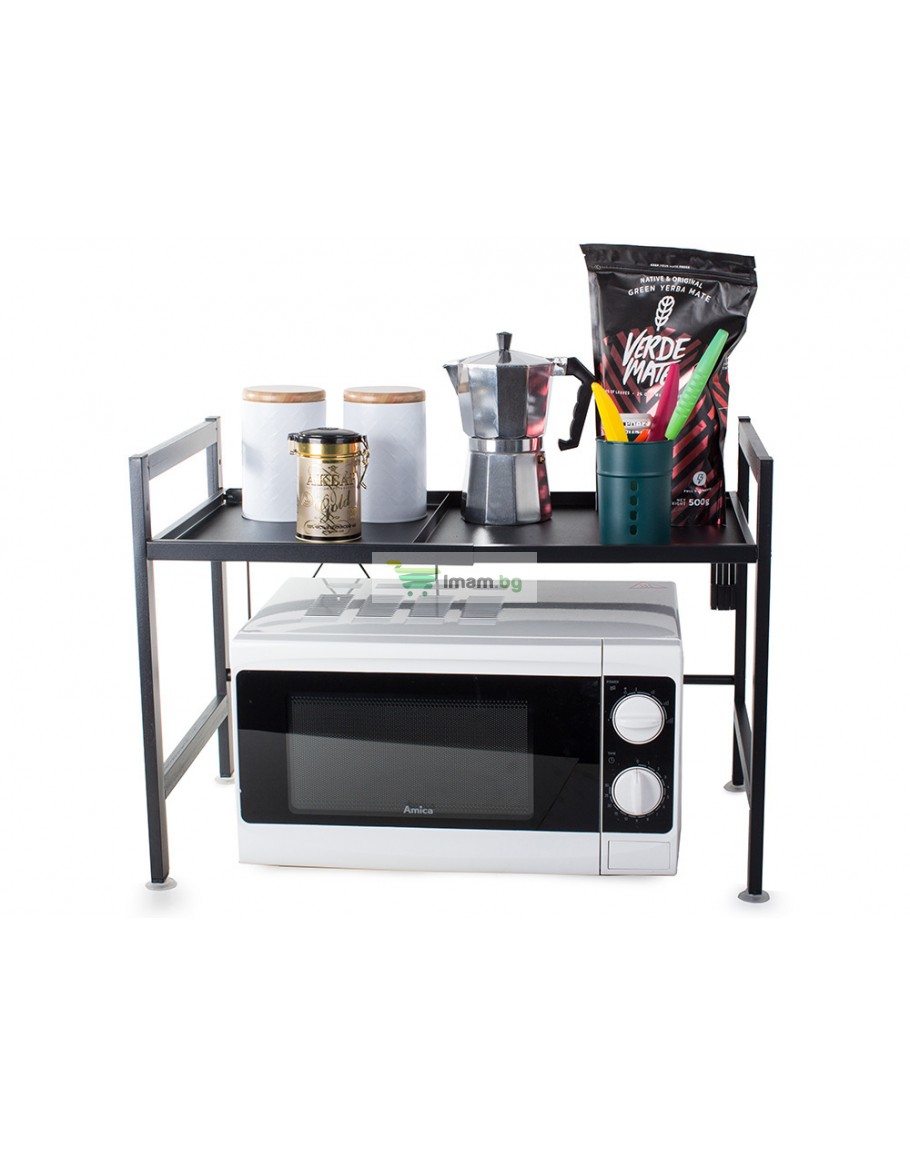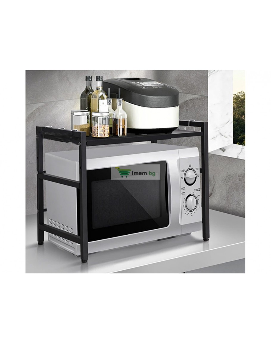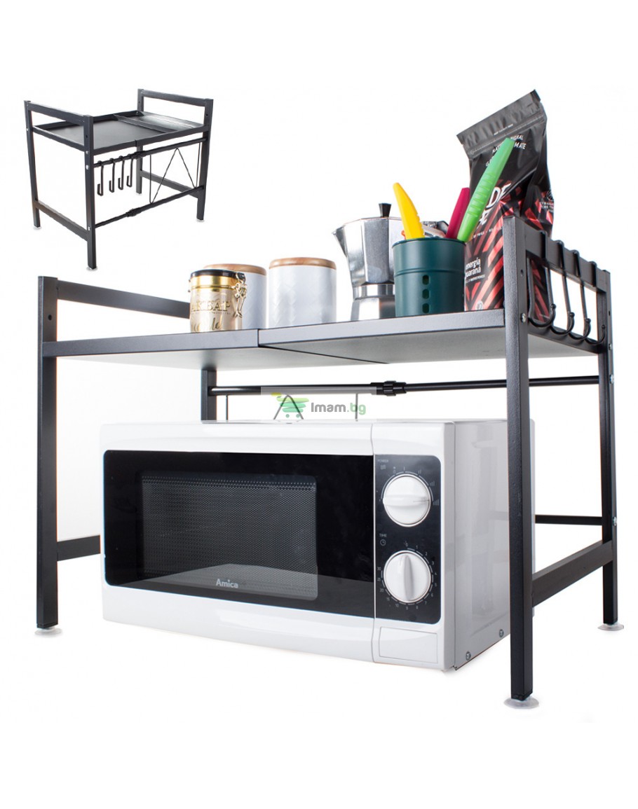 Регулируемият кухненски рафт за микровълновата печка ще спести много място в кухнята. Той ви позволява да създадете допълнително място за съхранение на подправки, както и други кухненски прибори, например чайник, кафемашина, тостер, втора микровълнова печка и др.