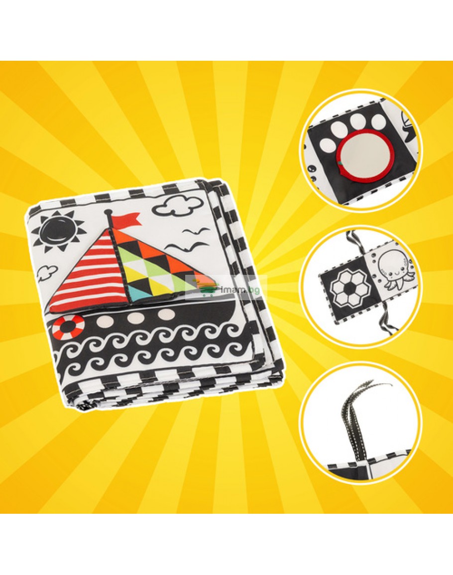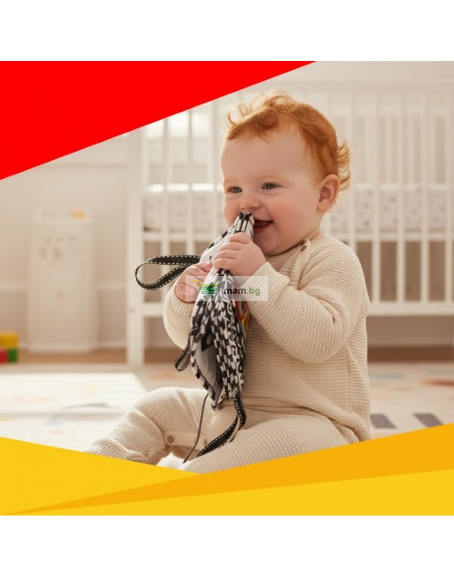 Безопасна от 0+ – книжката е мека и лека, проектирана с мисъл за най-малките деца. Не съдържа остри ръбове или малки части, така че е идеална за първата игра на вашето бебе и подпомага развитието му от раждането .