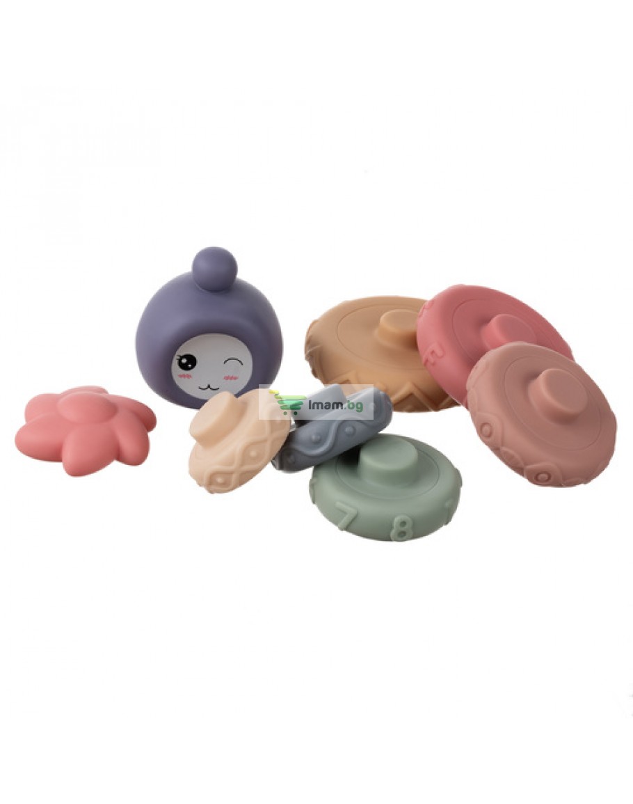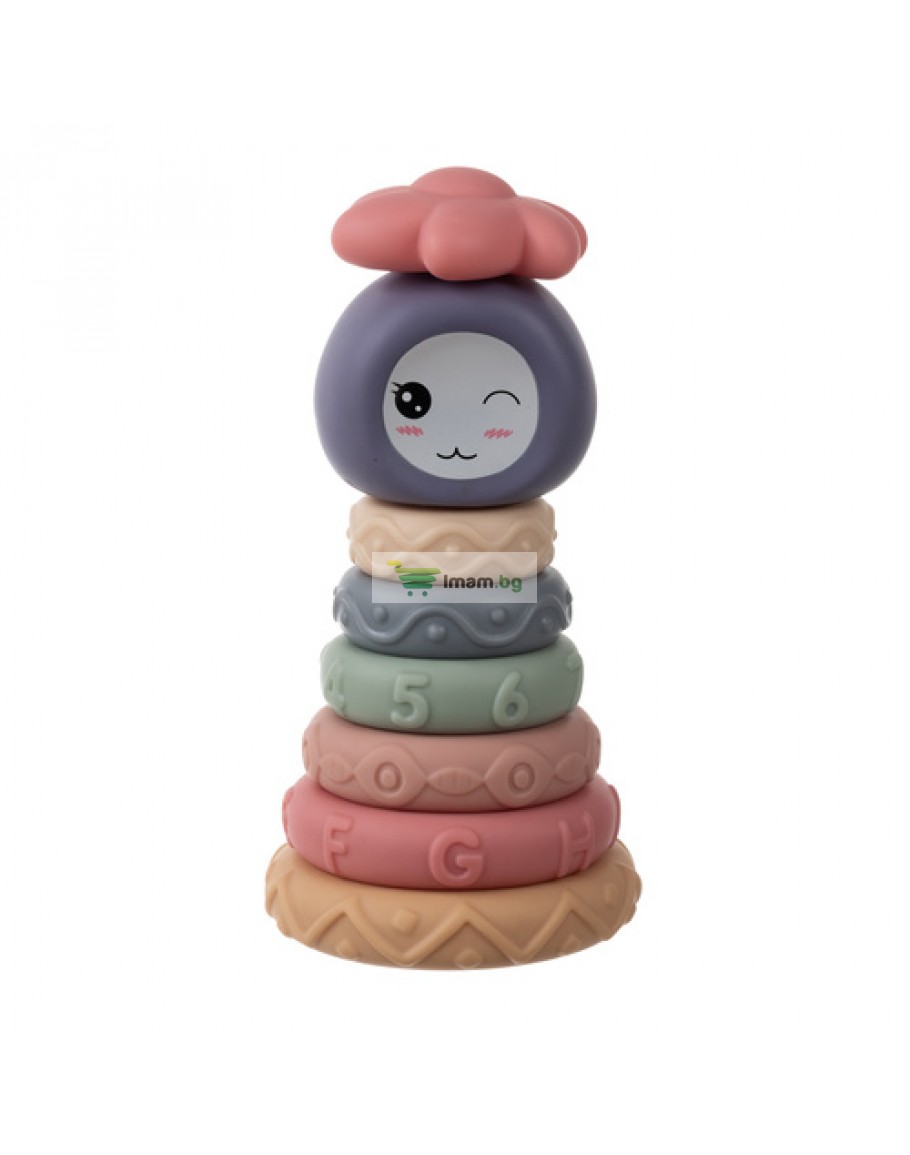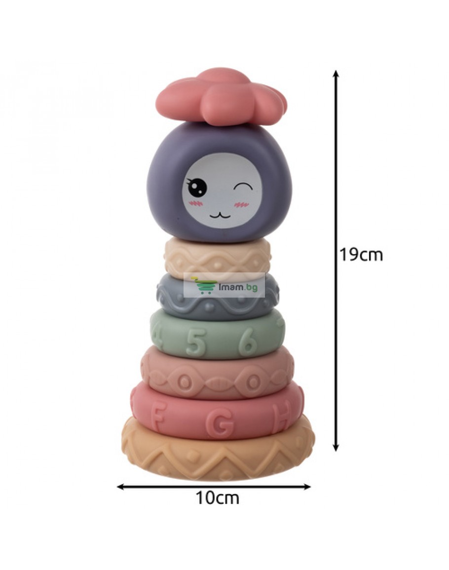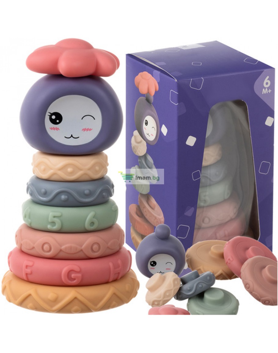 Сензорни блокове за деца, гумени меки креативни, Монтесори кула, пирамида 8 части