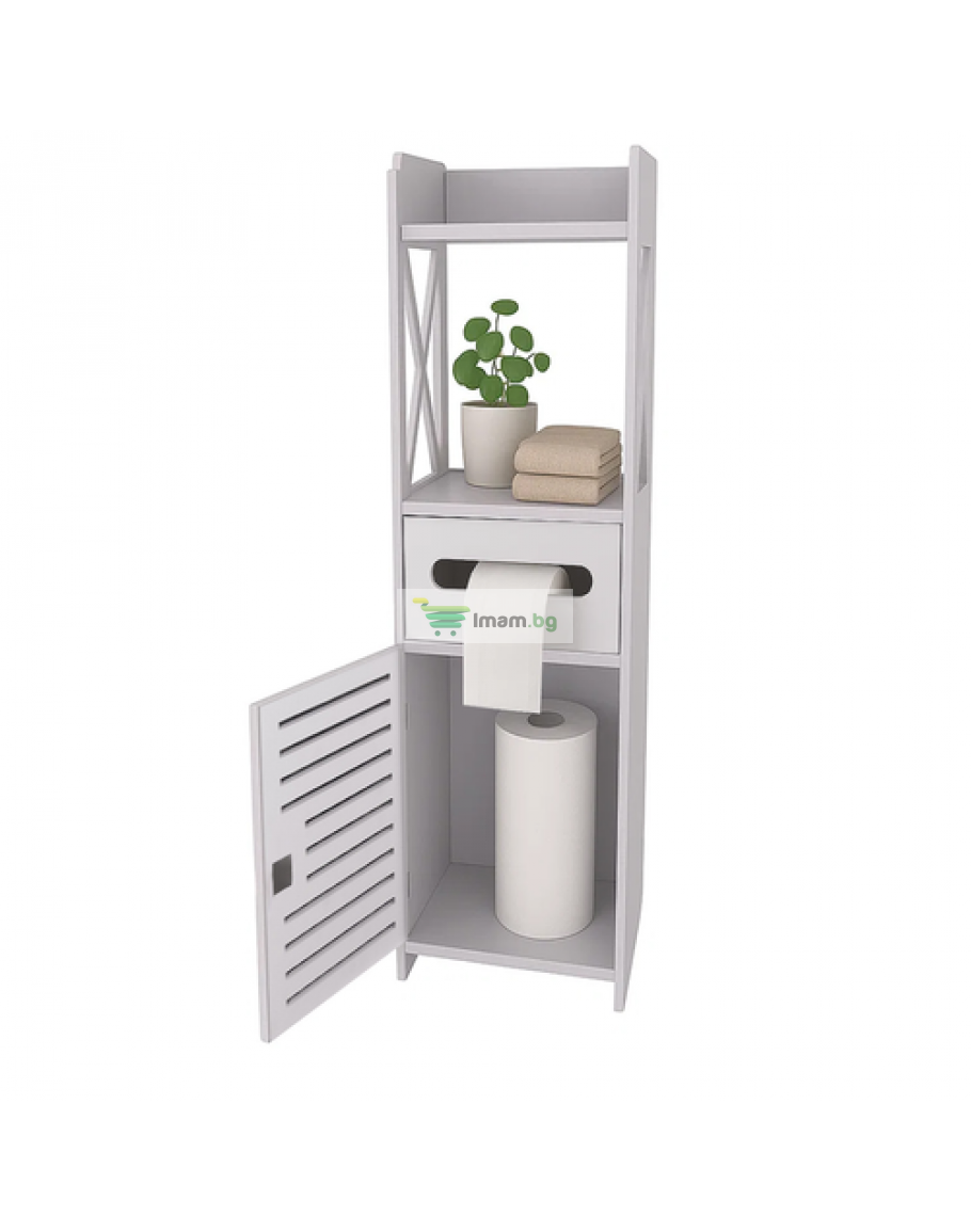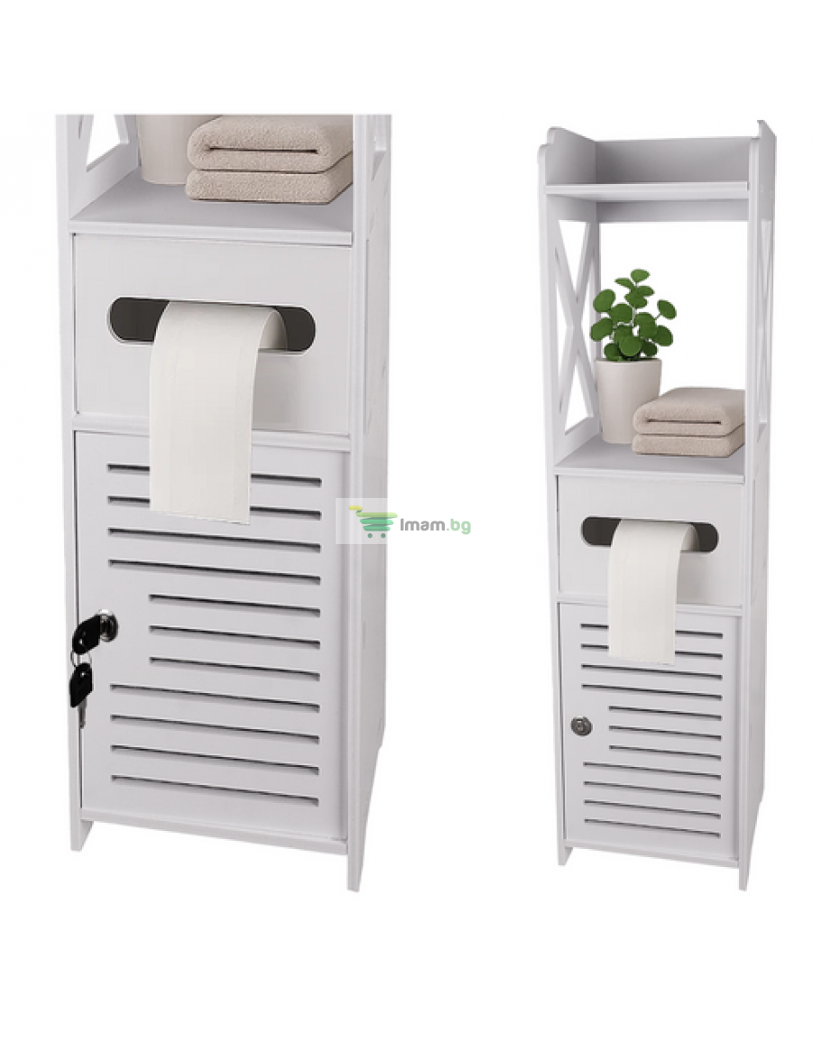 допълнително пространство - шкафът предлага практично място за съхранение, което винаги липсва в банята, можете да съхранявате в него кърпи, тоалетна хартия, козметика или почистващи препарати