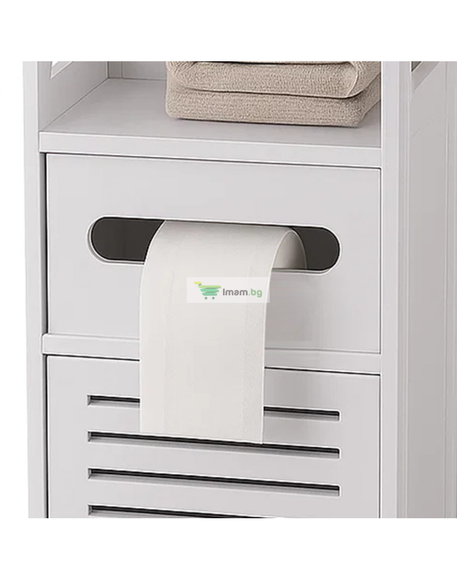 държач за тоалетна хартия - дискретна, практична кутия с отвор, който улеснява бързото и хигиенично отстраняване на хартията, без да се отваря целия шкаф