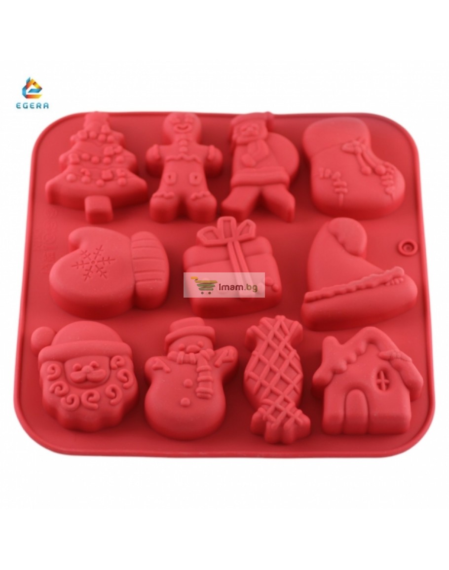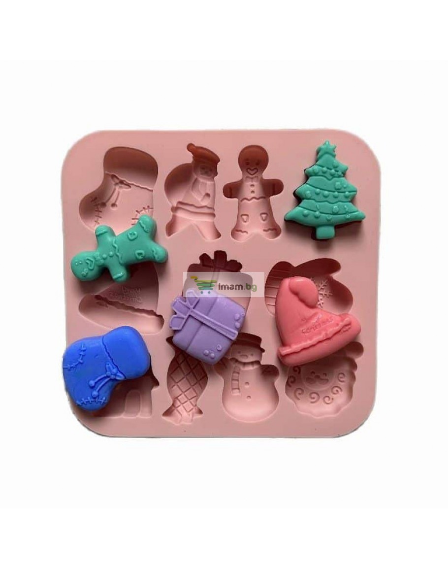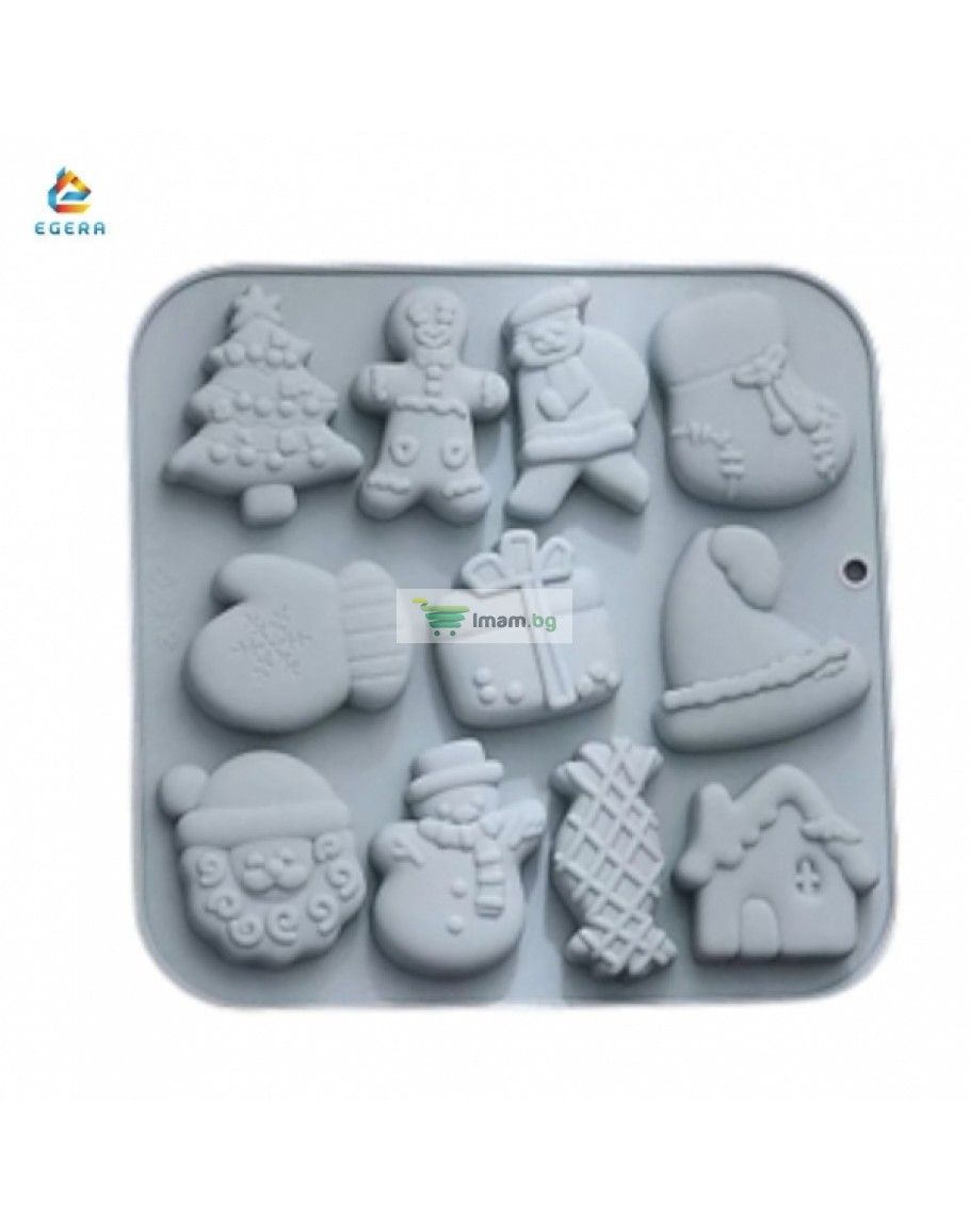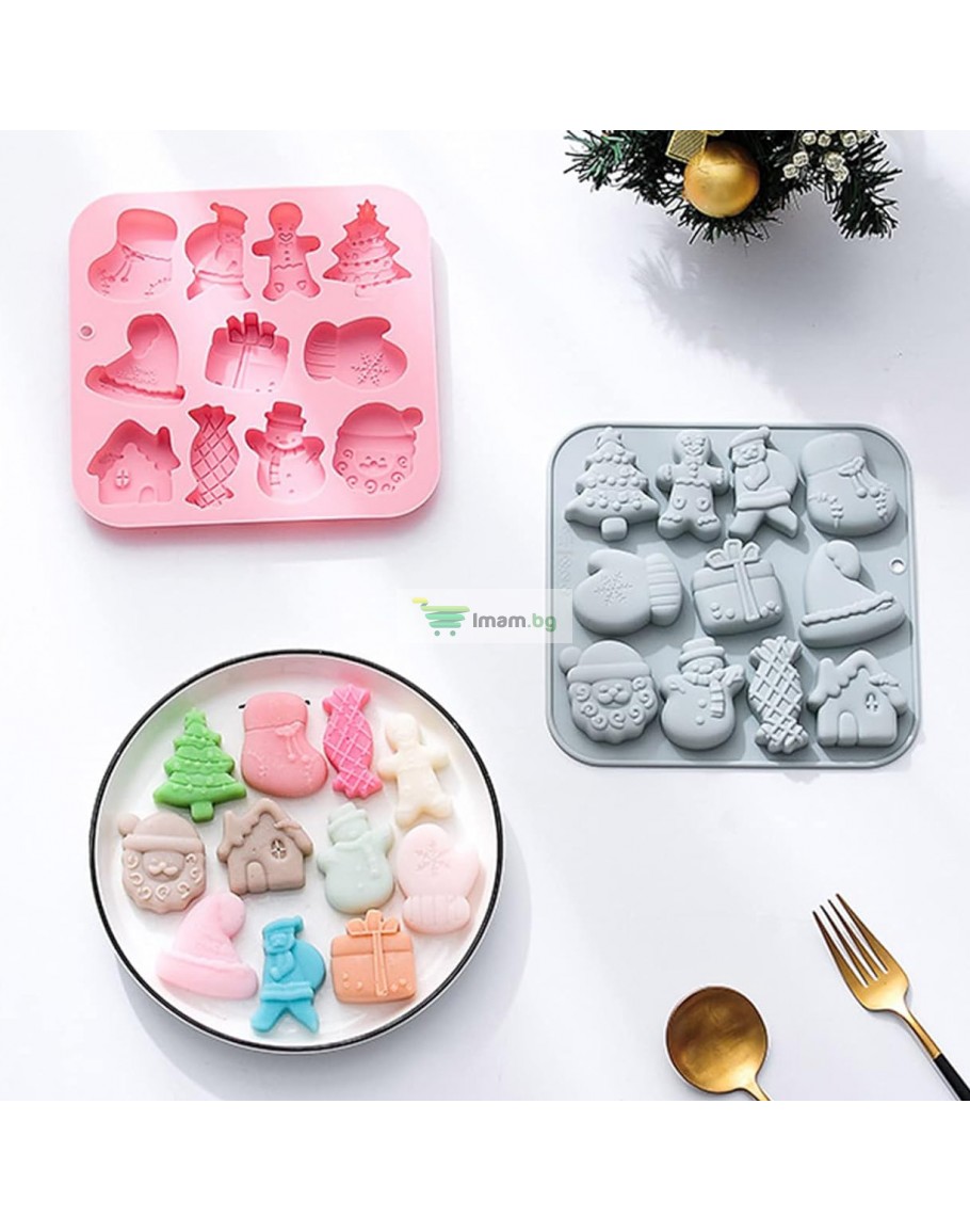 Силиконова форма за коледни сладки и шоколад силиконов коледен молд с 11 различни фигурки