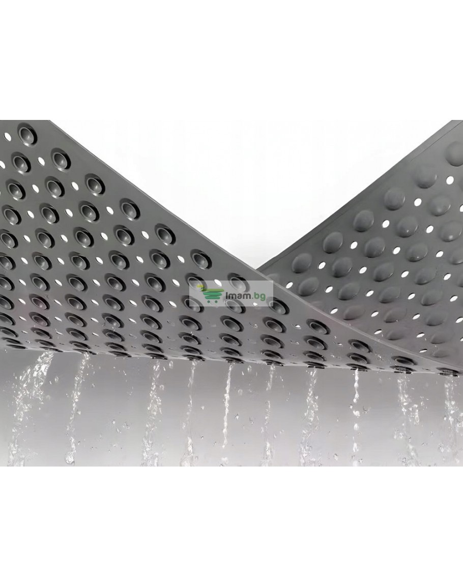 Долната страна на постелката е снабдена с множество вендузи, които се залепват здраво за пода и предотвратяват подхлъзване. Дренажните отвори позволяват бързо оттичане на водата, така че повърхността не задържа влага и остава хигиенична.