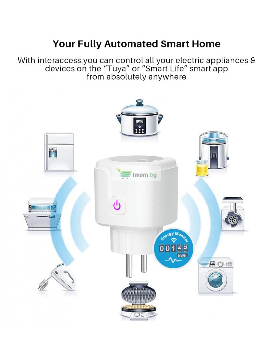 Включва вашия домашен уред, като вентилатор, овлажнител, дозатор за вода, светлини, микровълнова фурна и други в точно определено от вас време, като никога не губите енергия с функцията за обратно броене на устройството.