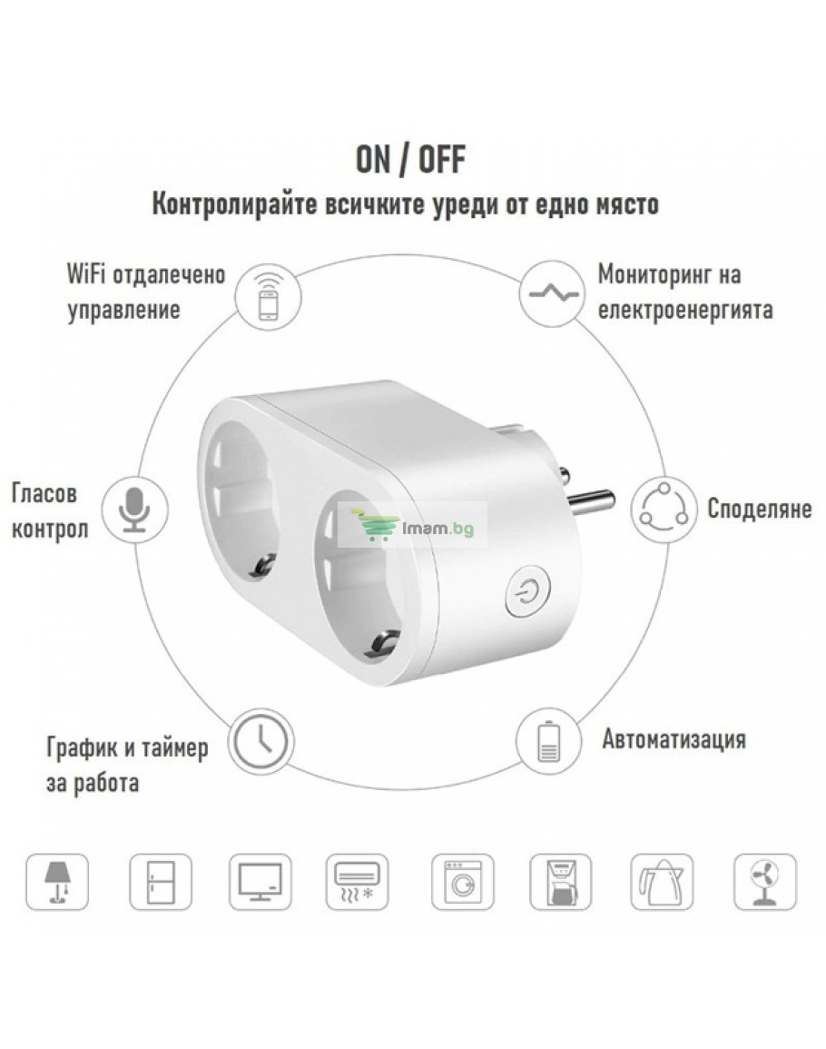 Умен двоен контакт с Wi-Fi, интелигентен таймер 16a, приложение