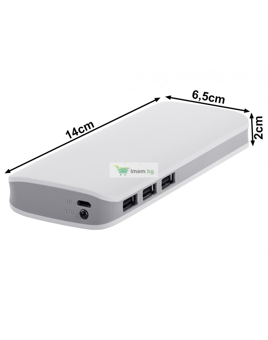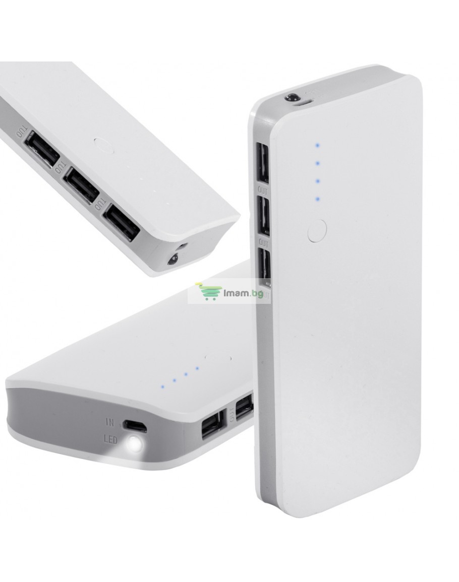 Външна батерия 10000mah с 3 USB, LED фенерче