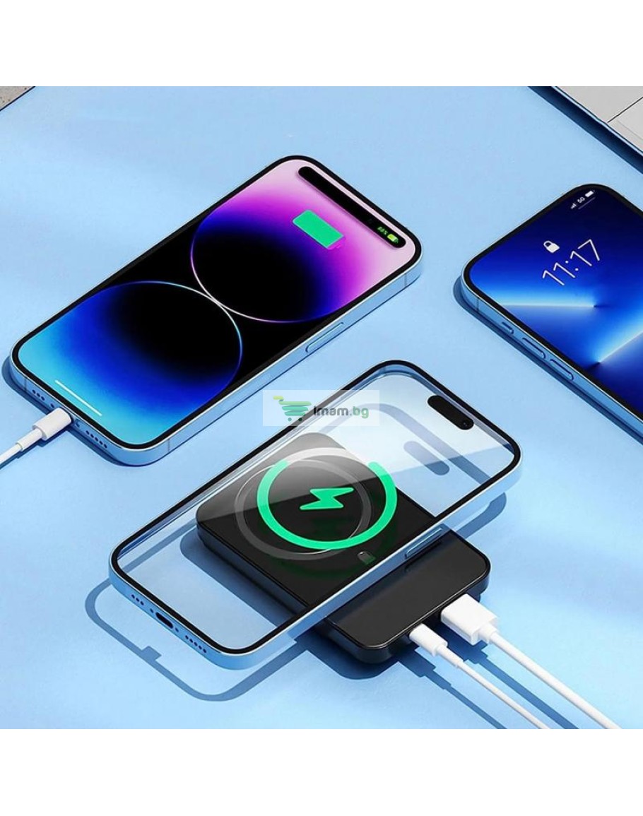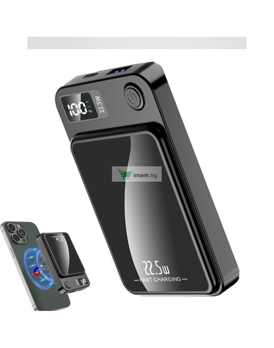 Външна батерия 5000 mAh 22.5W Безжична Черна